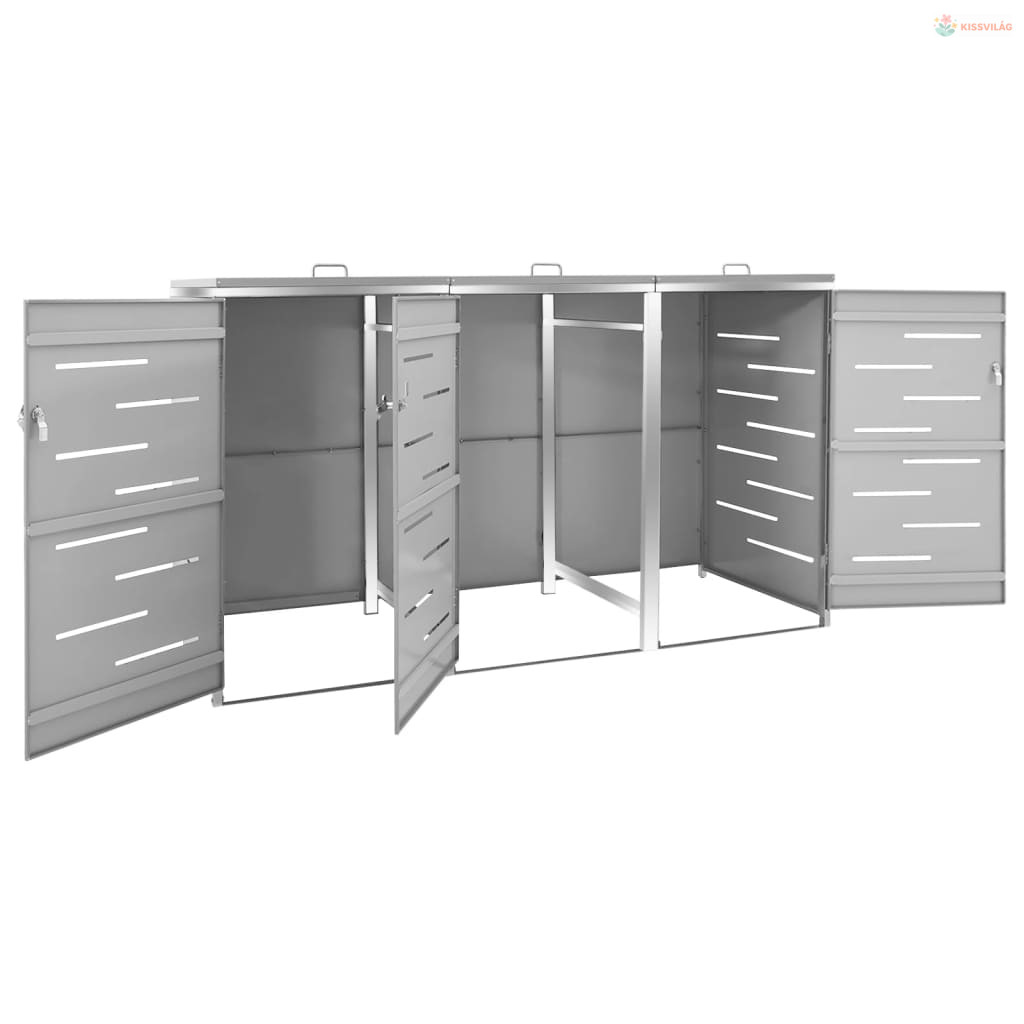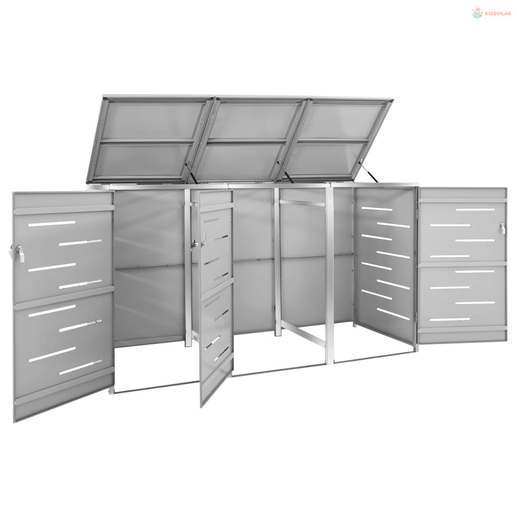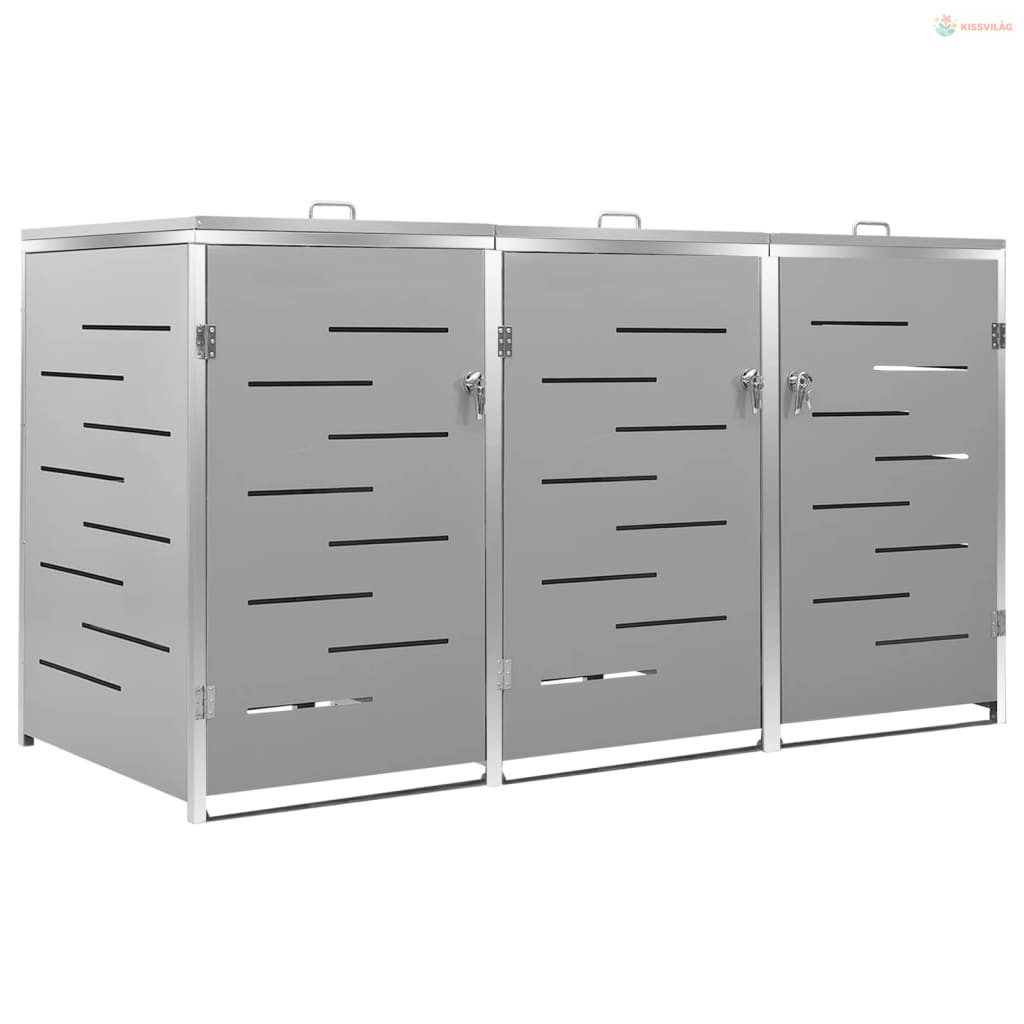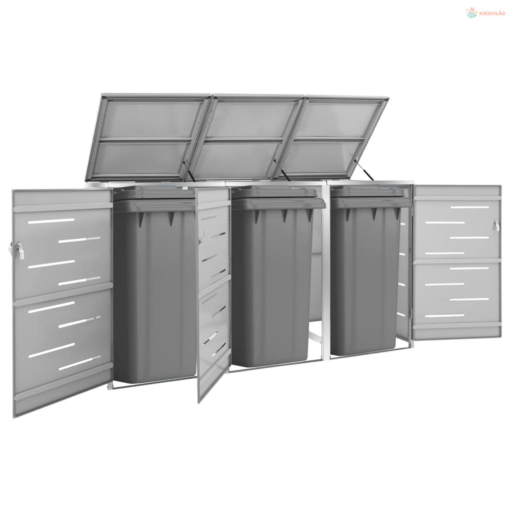 Acél tároló három gurítható szemeteskukához 207x77,5x112,5 cm