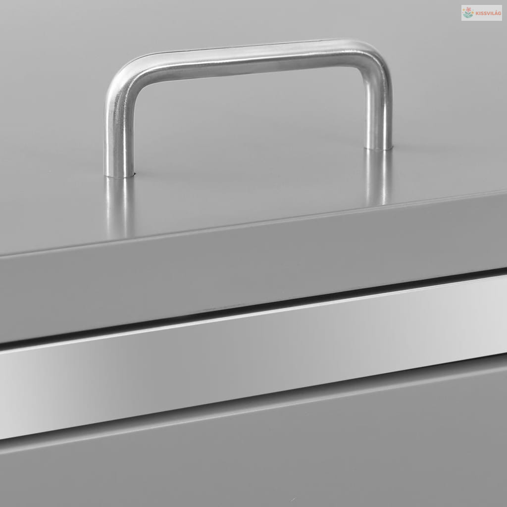 Ez a szemeteskuka tároló horganyzott acélpanelből és acélvázból készült, így rendkívül stabil és rozsdaálló. Az üreges tervezés lehetővé teszi a légáramlást és meggátolja a kellemetlen szagokat, a zárrendszer pedig biztosítja a szemeteskukák biztonságos tárolását. Továbbá a praktikus rugós fedél egyszerűvé teszi a kukát be- és kitolását.