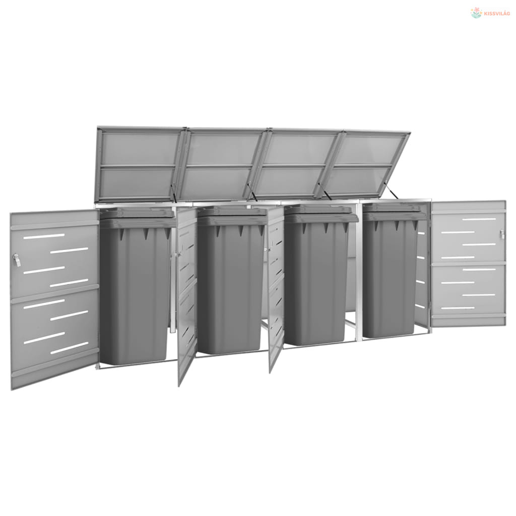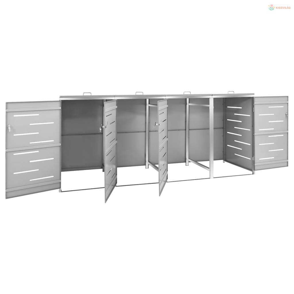 Acéltároló négy gurítható szemeteskukához 276,5x77,5x112,5 cm