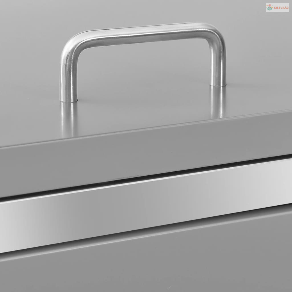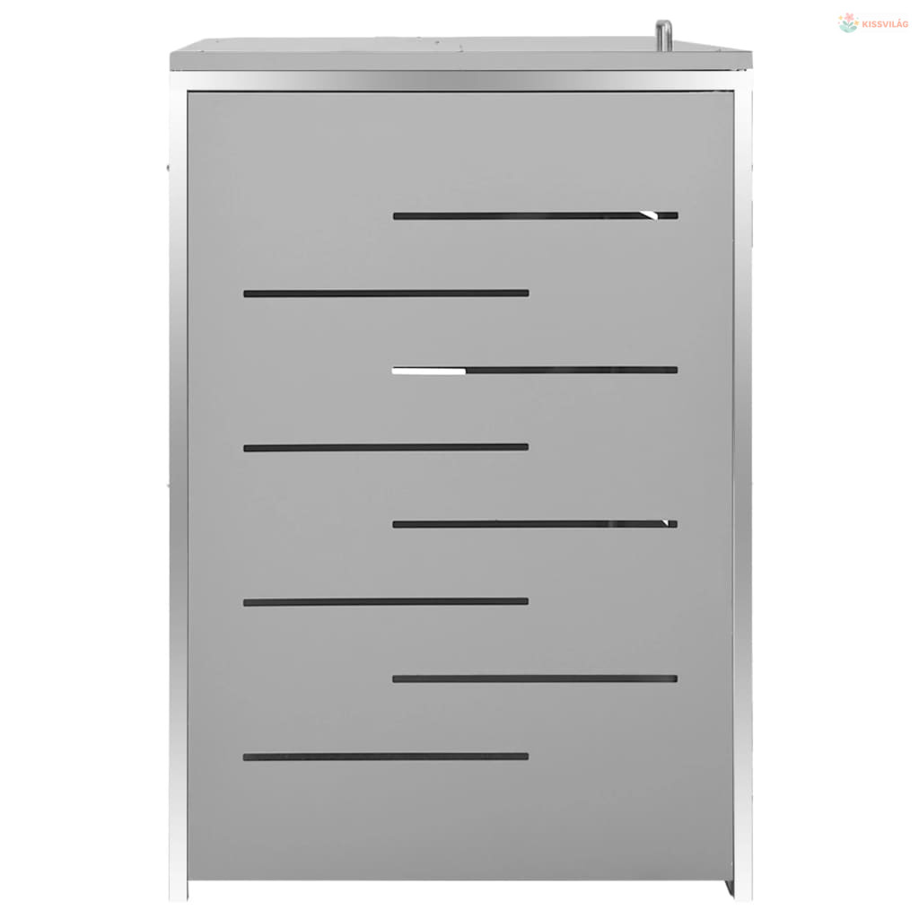Ez a szemeteskuka tároló horganyzott acélpanelből és acélvázból készült, így rendkívül stabil és rozsdaálló. Az üreges tervezés lehetővé teszi a légáramlást és meggátolja a kellemetlen szagokat, a zárrendszer pedig biztosítja a szemeteskukák biztonságos tárolását. Továbbá a praktikus rugós fedél egyszerűvé teszi a kukát be- és kitolását.
