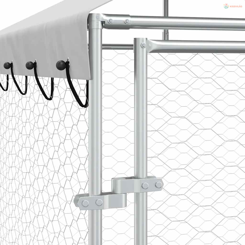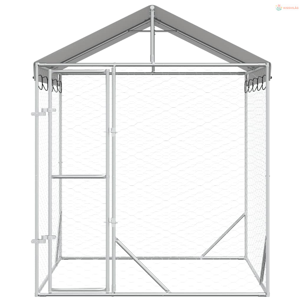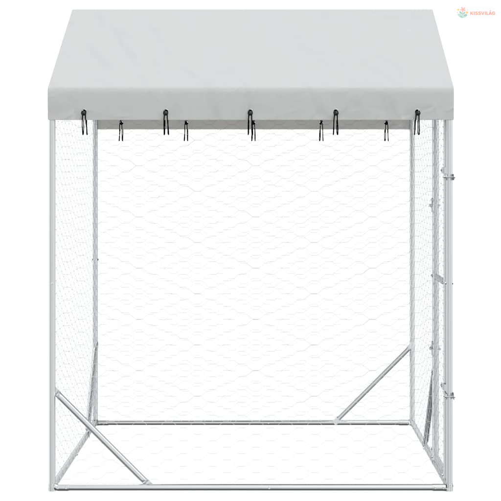 Ezüstszínű horganyzott acél kutyakennel tetővel 2x2x2,5 m