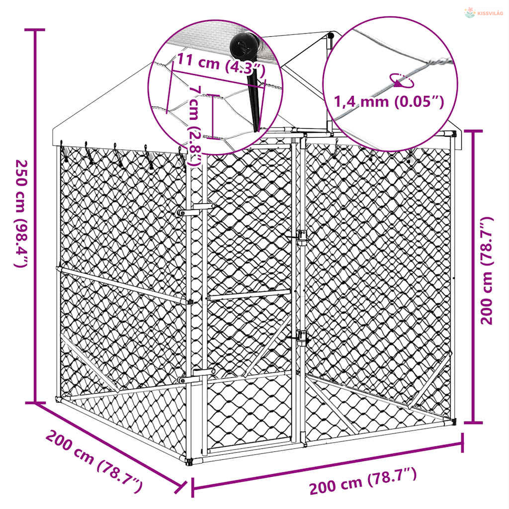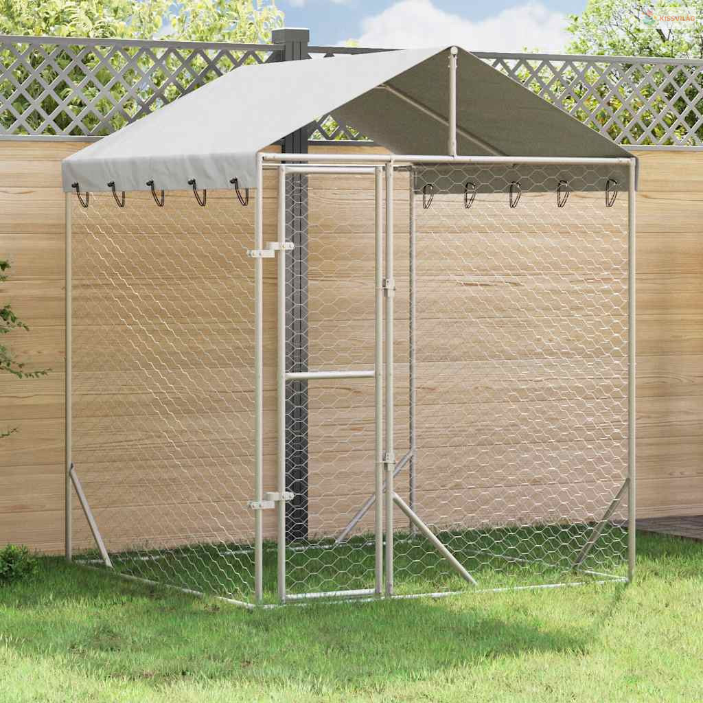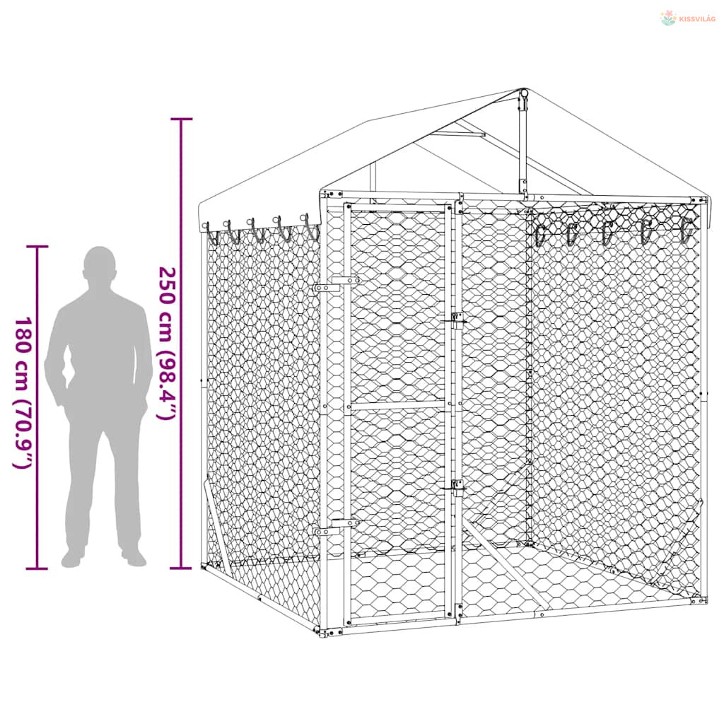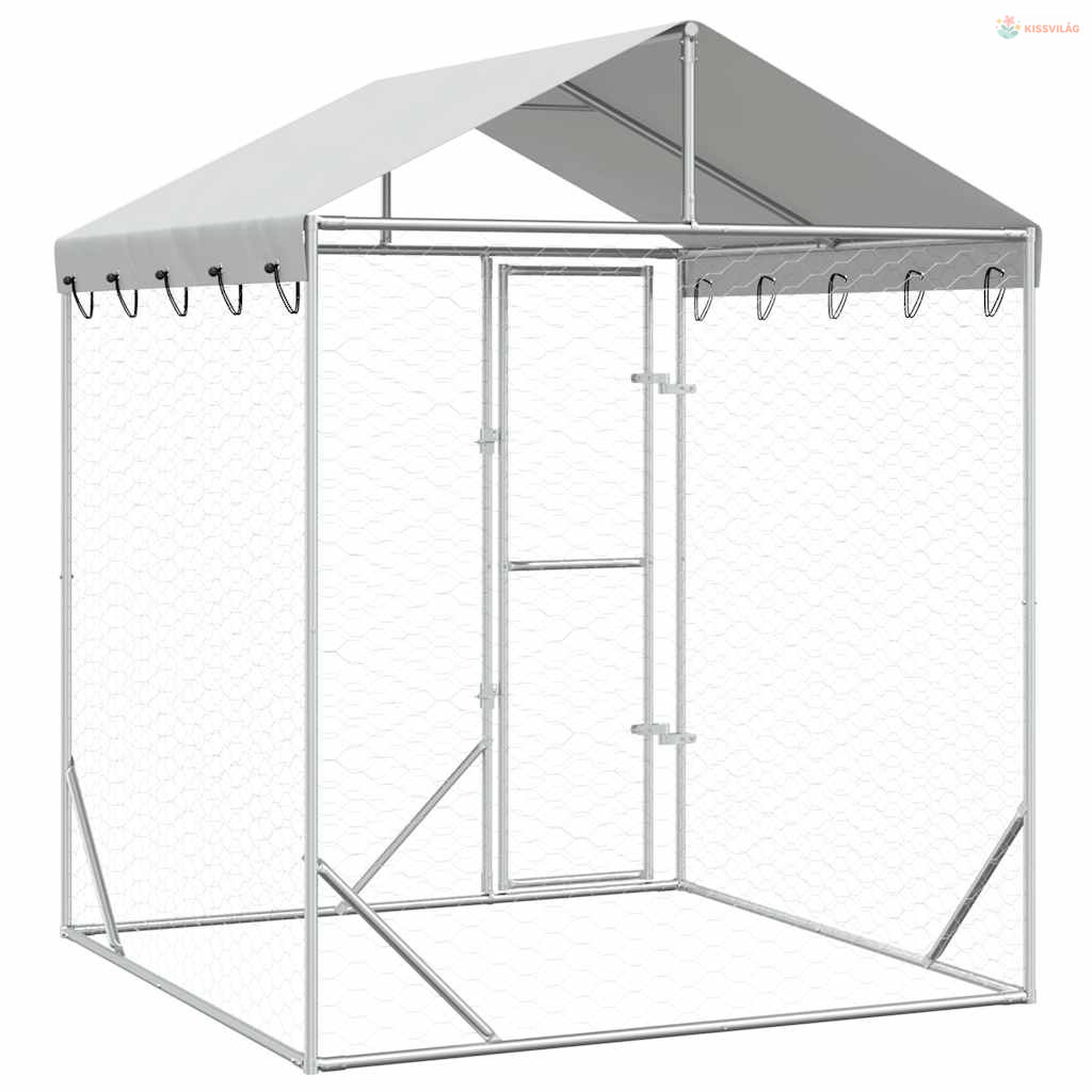 Ezüstszínű horganyzott acél kutyakennel tetővel 2x2x2,5 m