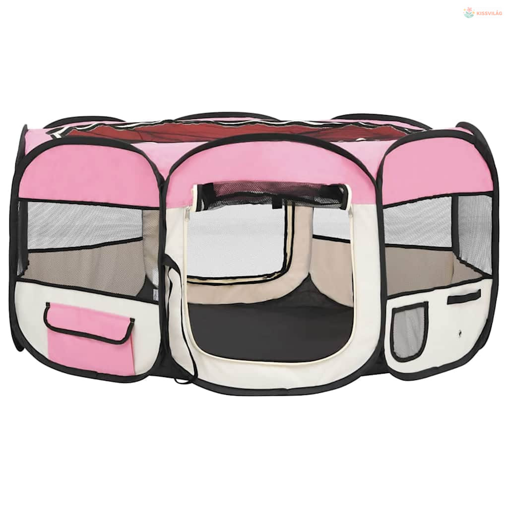 Rózsaszínű összecsukható kutyakennel hordtáskával 145x145x61 cm