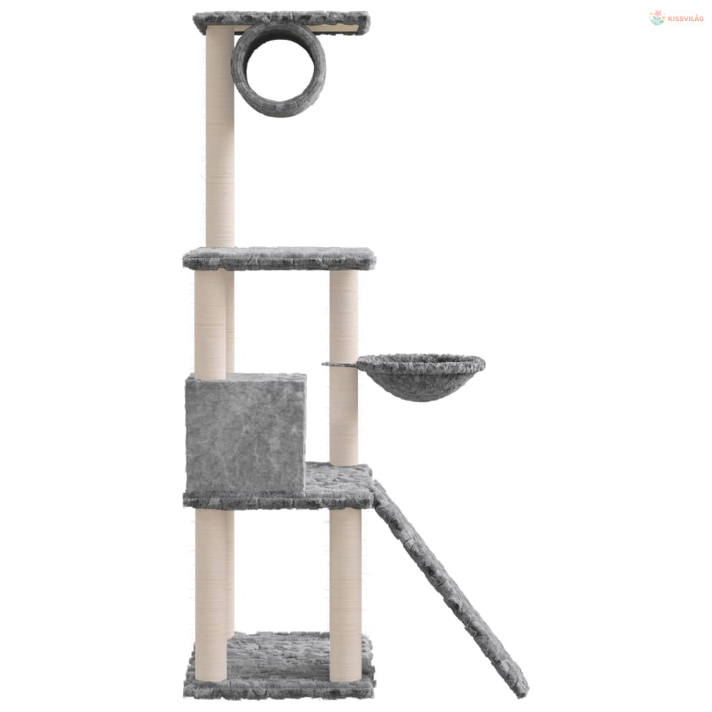 Világosszürke macskabútor szizál kaparófákkal 131 cm