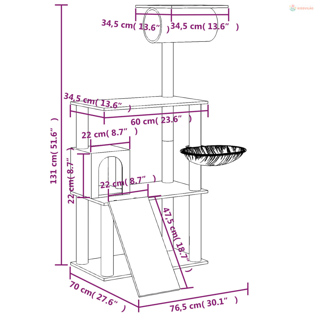 • Minden egyben macskatorony: A többszintes macskabútor 1 házzal, 1 függőággyal, 1 alagúttal, 1 létrával és emelvényekkel lett ellátva, tökéletes helyet biztosítva macskáinak a mászáshoz, kaparáshoz, bujkáláshoz és pihenéshez.