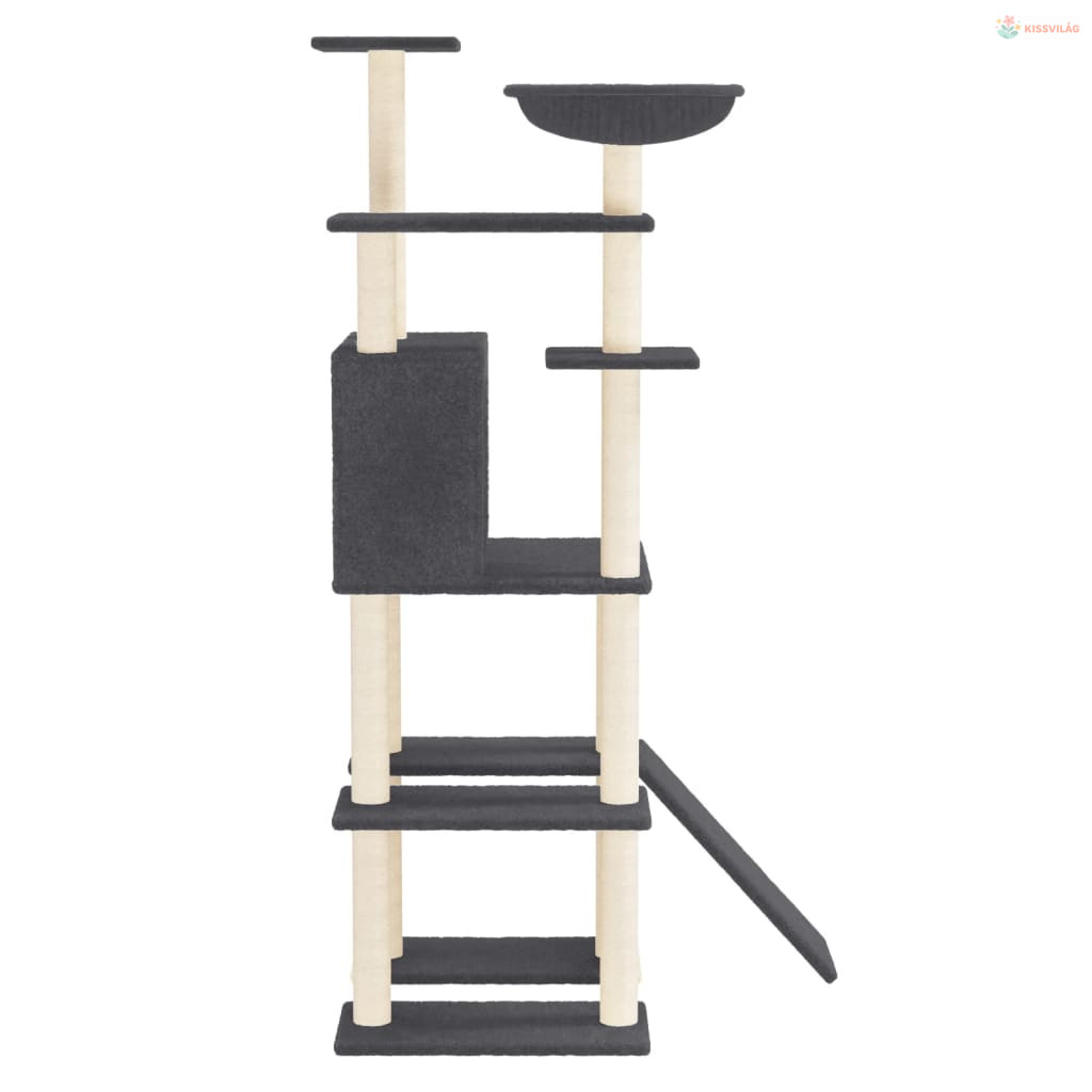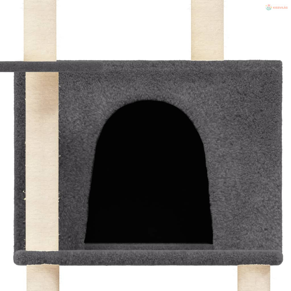 Sötétszürke macskabútor szizál kaparóoszlopokkal 166 cm