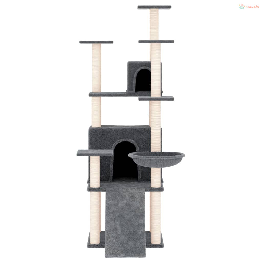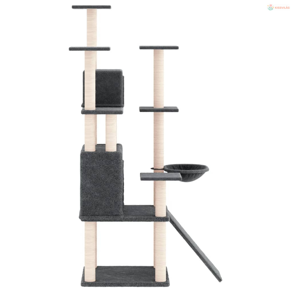 Sötétszürke macskabútor szizál kaparóoszlopokkal 154 cm