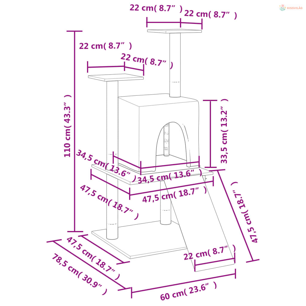 • Minden egyben macskatorony: A többszintes macskabútor egy házzal, egy létrával és emelvényekkel lett ellátva, tökéletes helyet biztosítva macskáinak a mászáshoz, kaparáshoz, bujkáláshoz és pihenéshez.