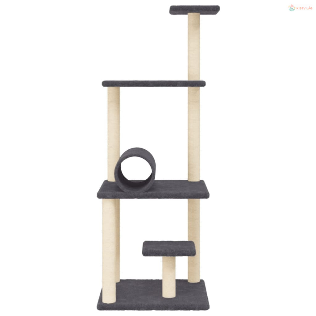 Sötétszürke macskabútor szizál kaparóoszlopokkal 136 cm
