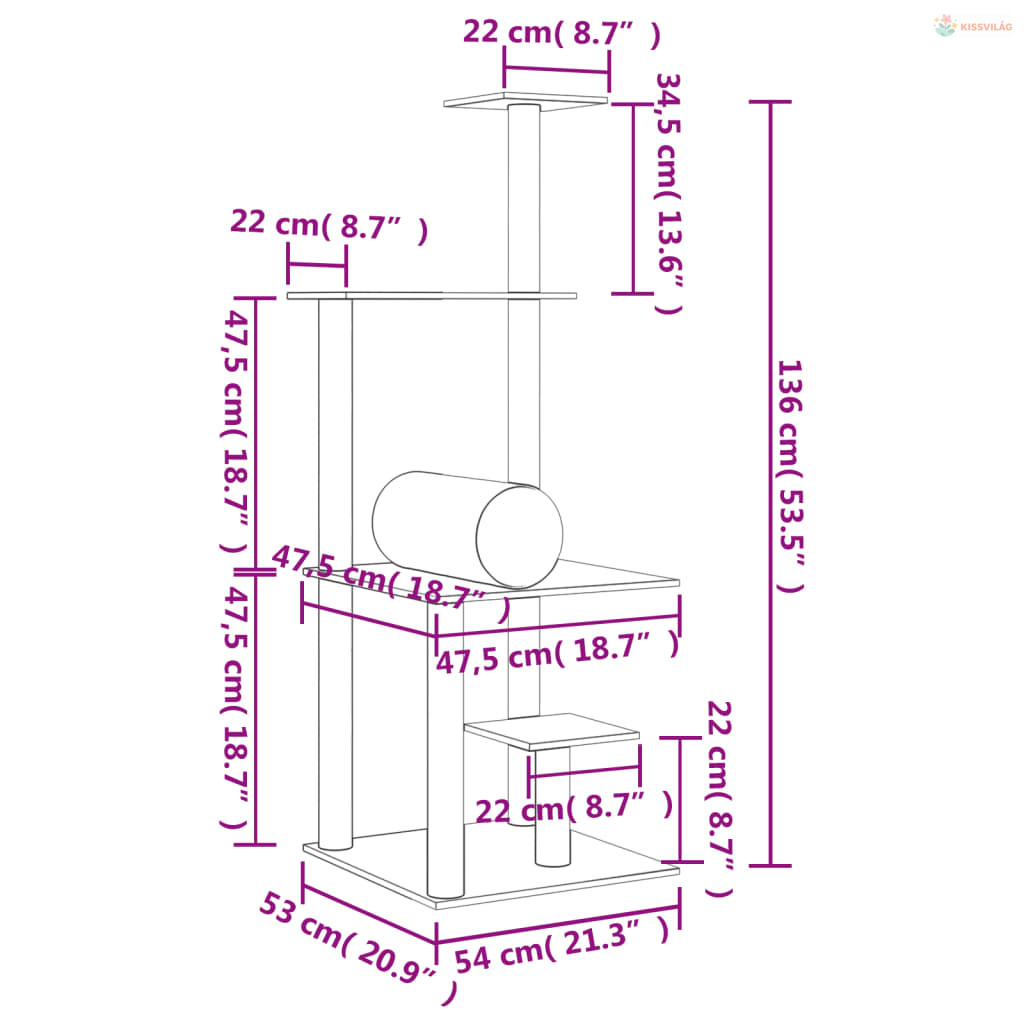 • Minden egyben macskatorony: A többszintes macskabútor egy alagúttal és platformokkal lett ellátva, tökéletes helyet biztosítva macskáinak a mászáshoz, kaparáshoz, és pihenéshez.