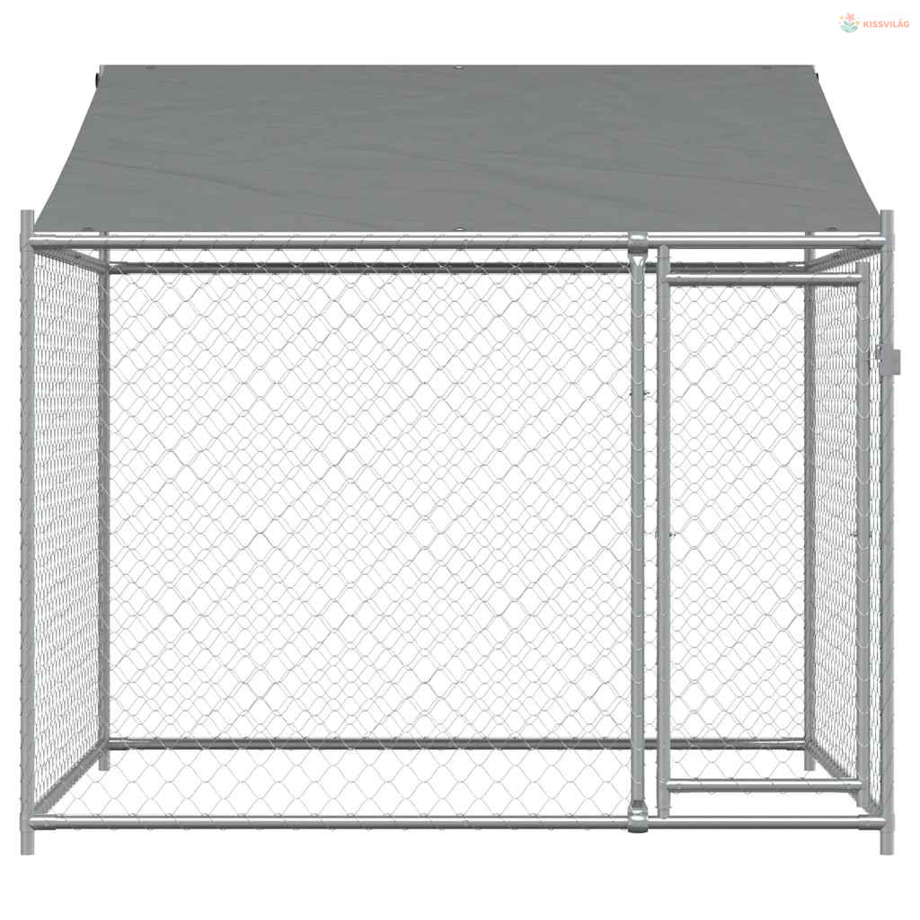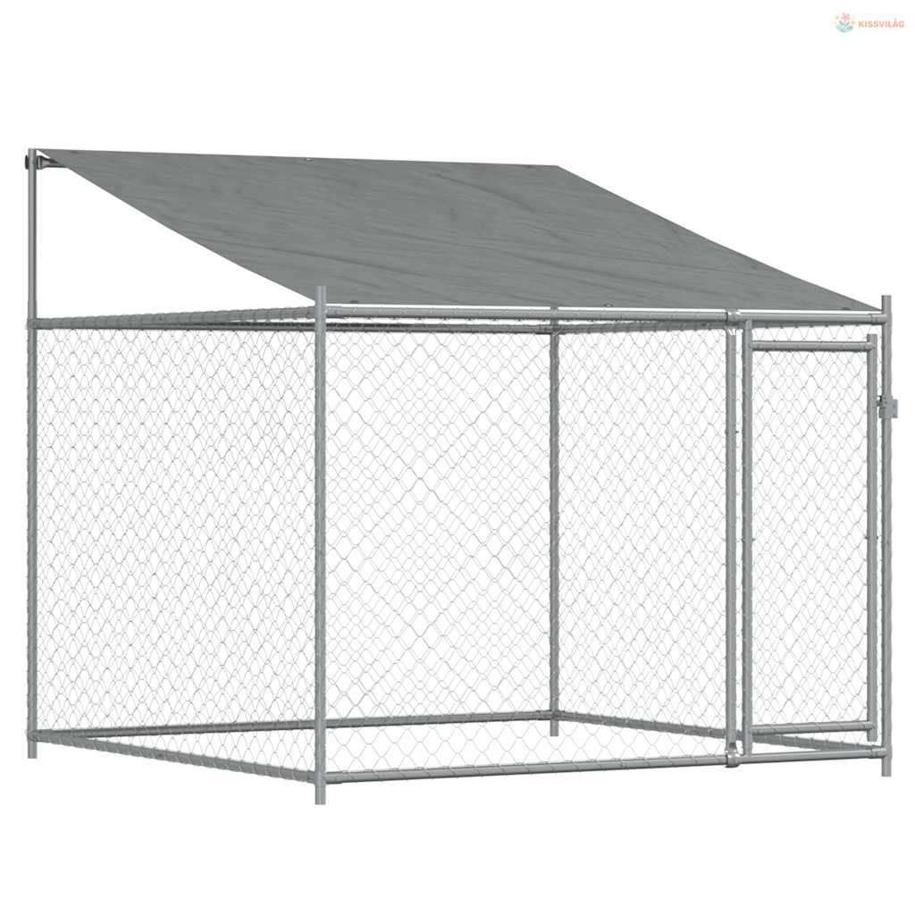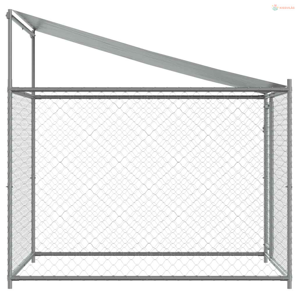 Szürke horganyzott acél kutyaketrec tetővel és ajtóval 2x2x2 m