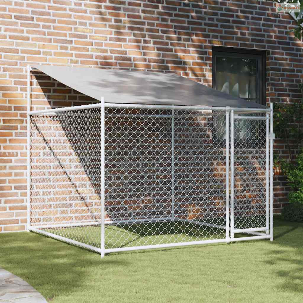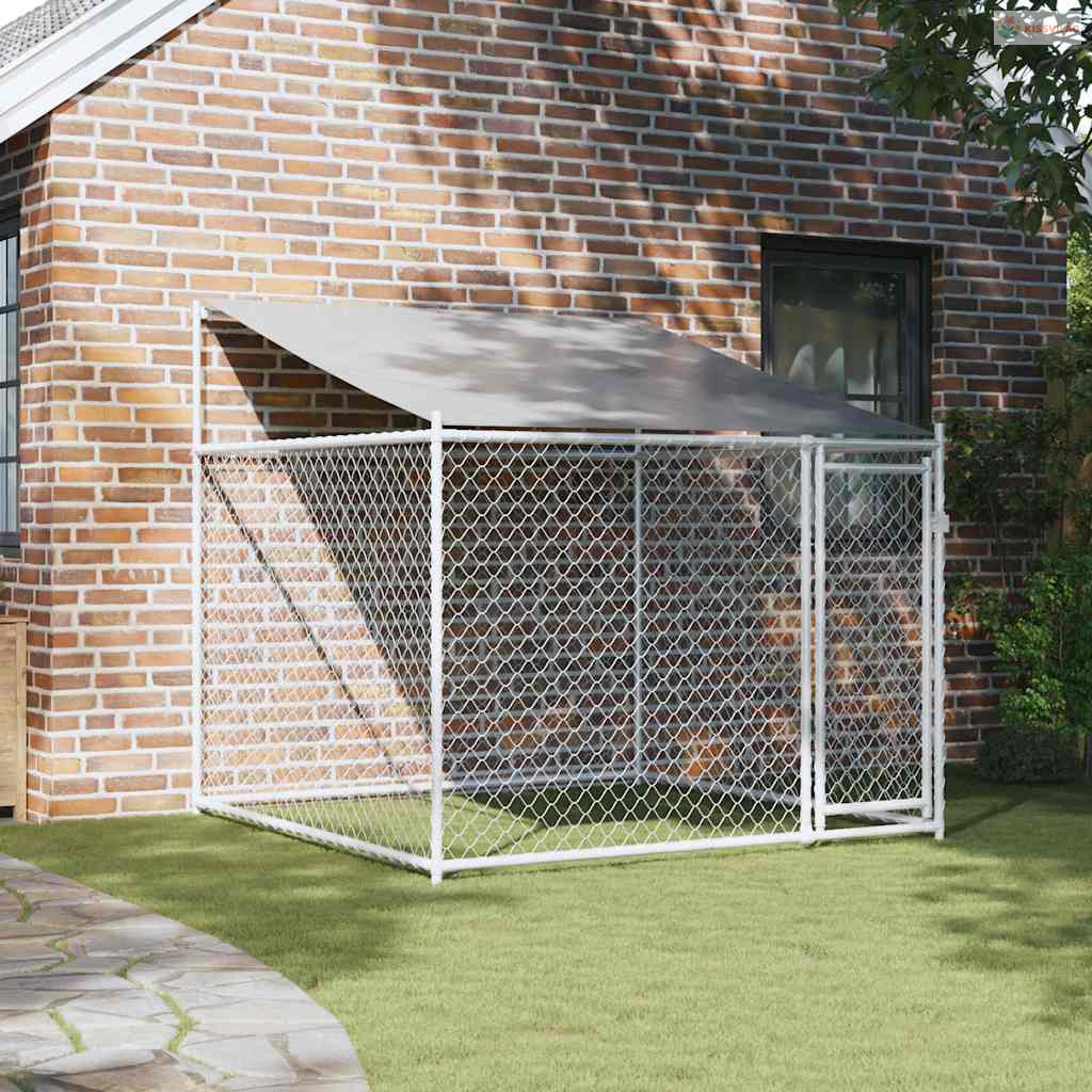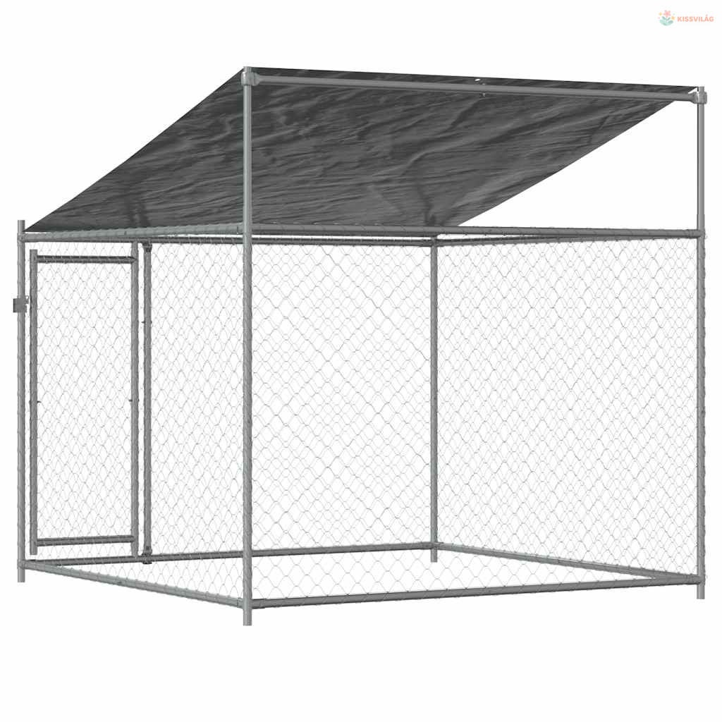 Szürke horganyzott acél kutyaketrec tetővel és ajtóval 2x2x2 m