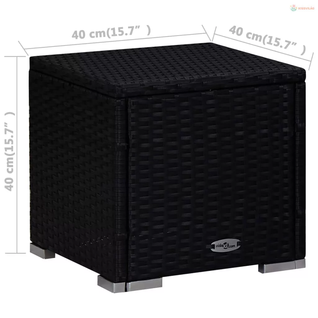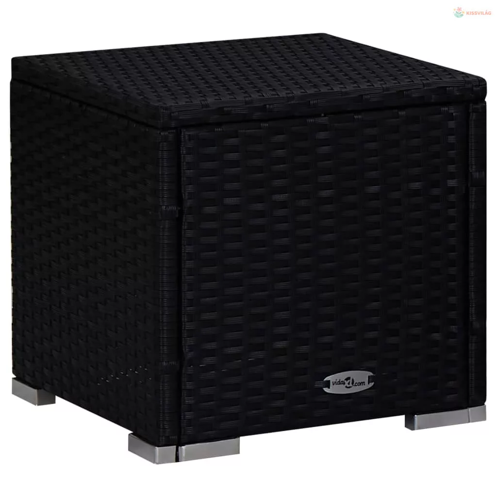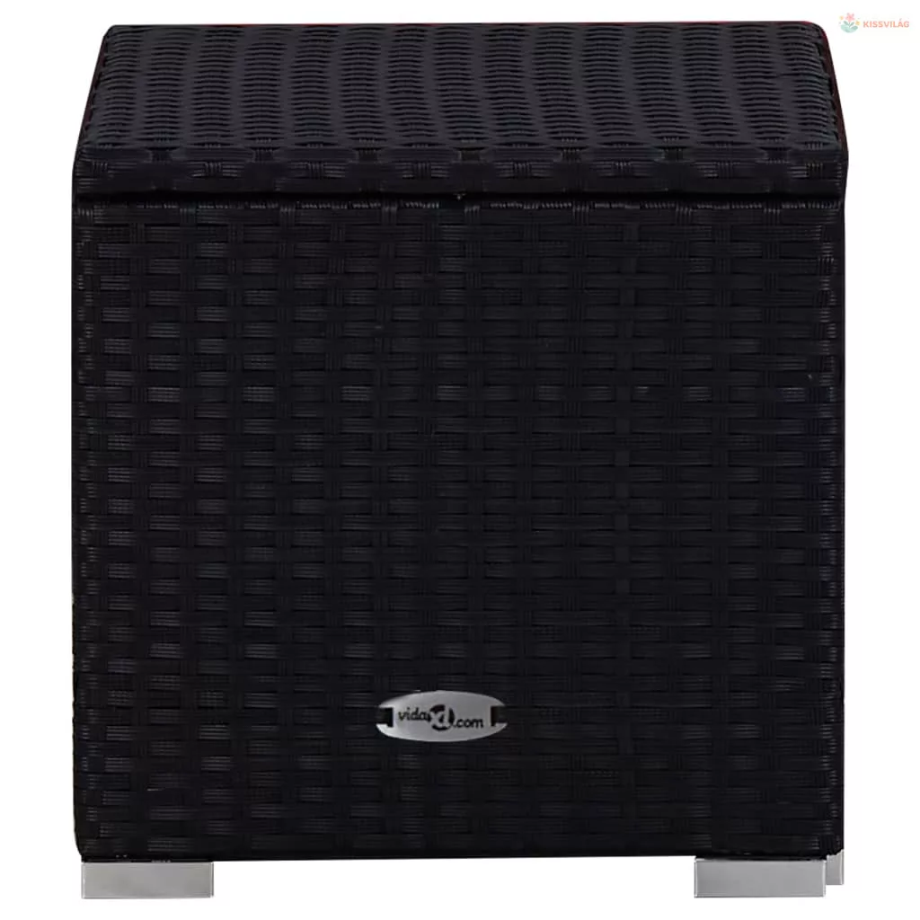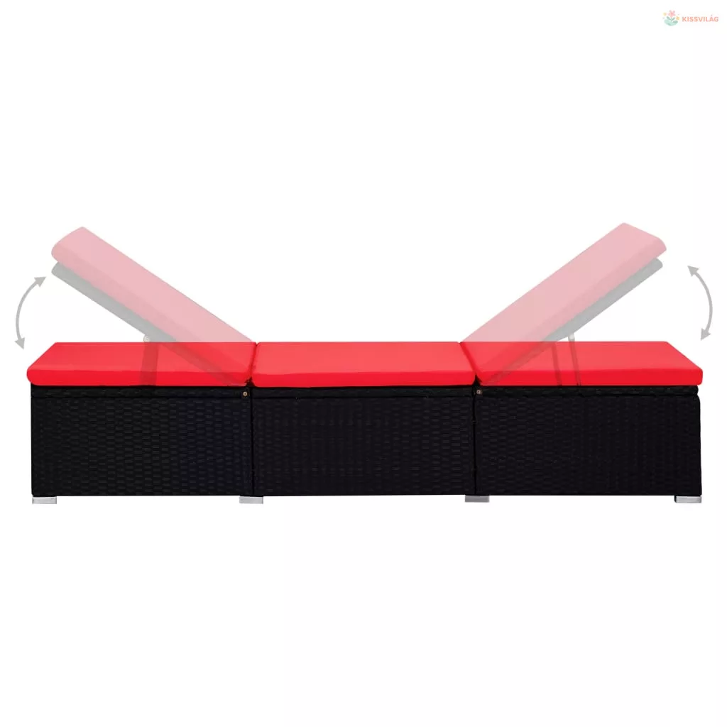 3 részes fekete polyrattan kerti napozóágy szett asztallal