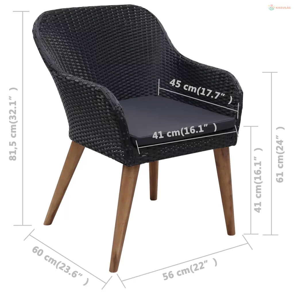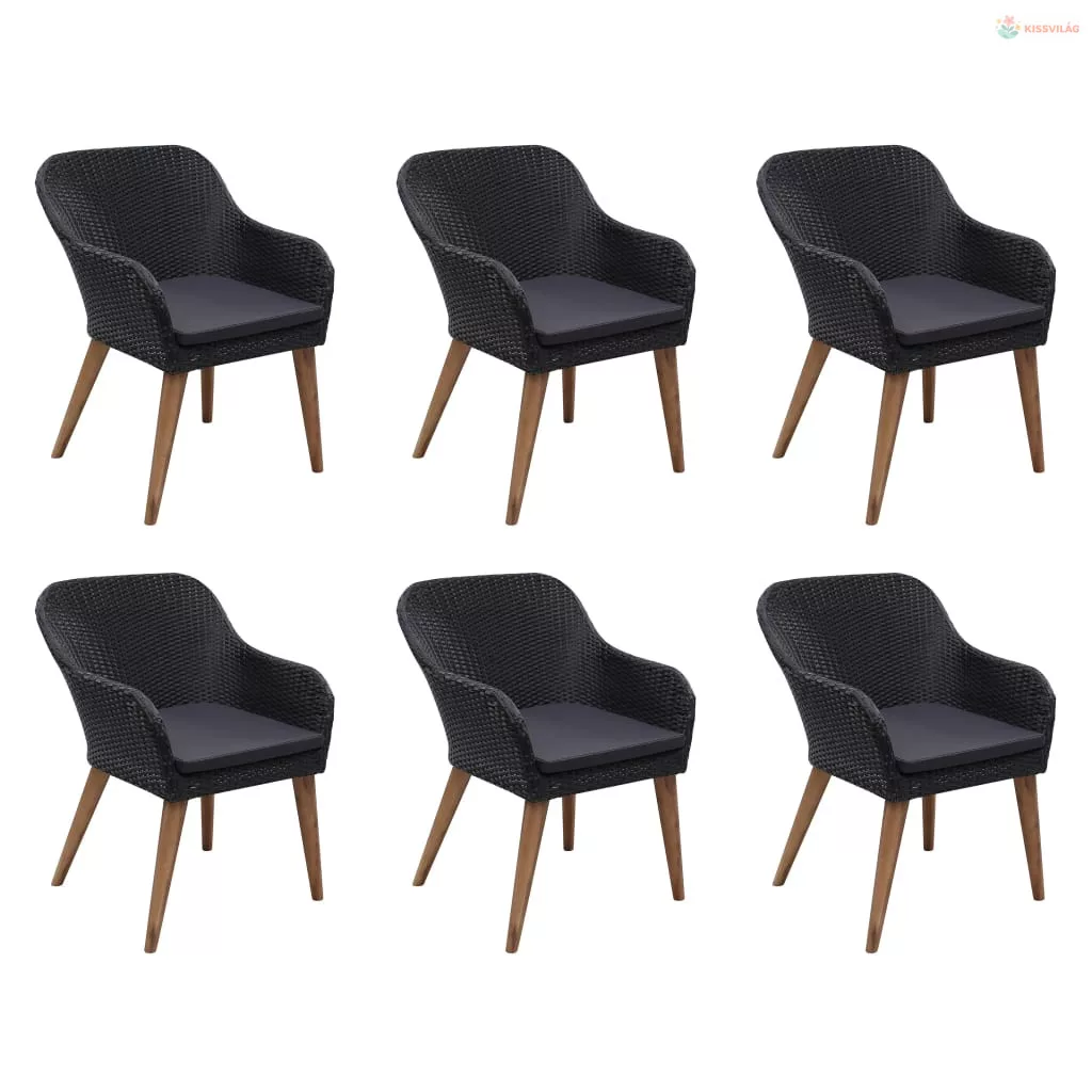 7 részes fekete polyrattan kültéri étkezőszett párnákkal