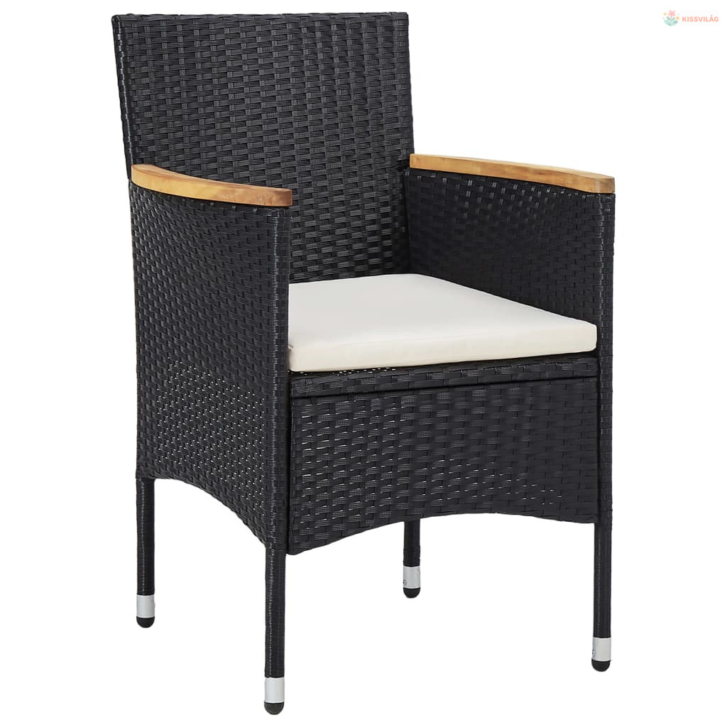 3 részes fekete polyrattan és akácfa kerti étkezőgarnitúra
