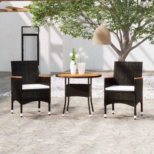 3 részes fekete polyrattan kerti étkezőgarnitúra