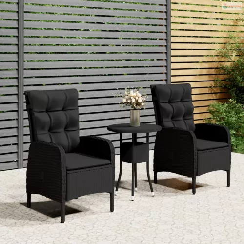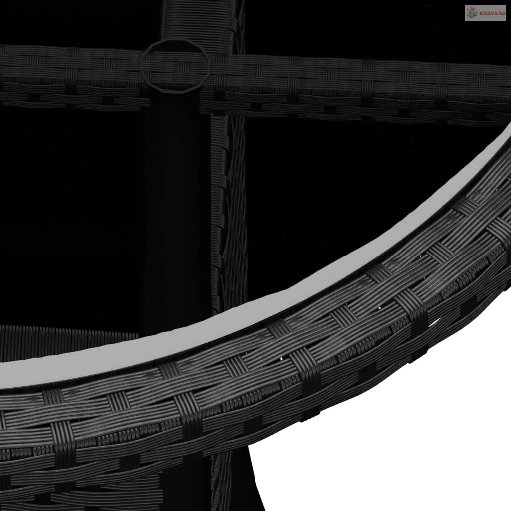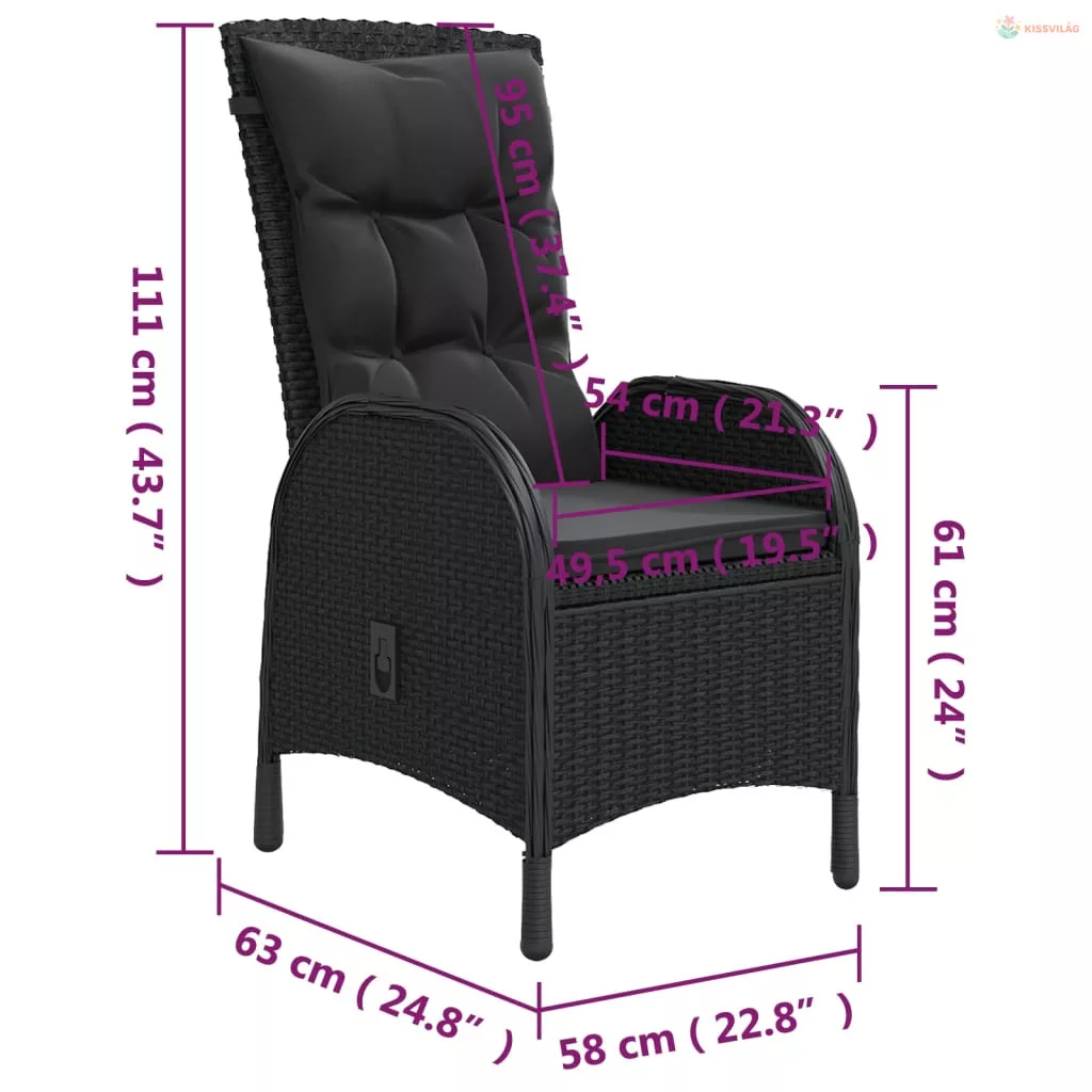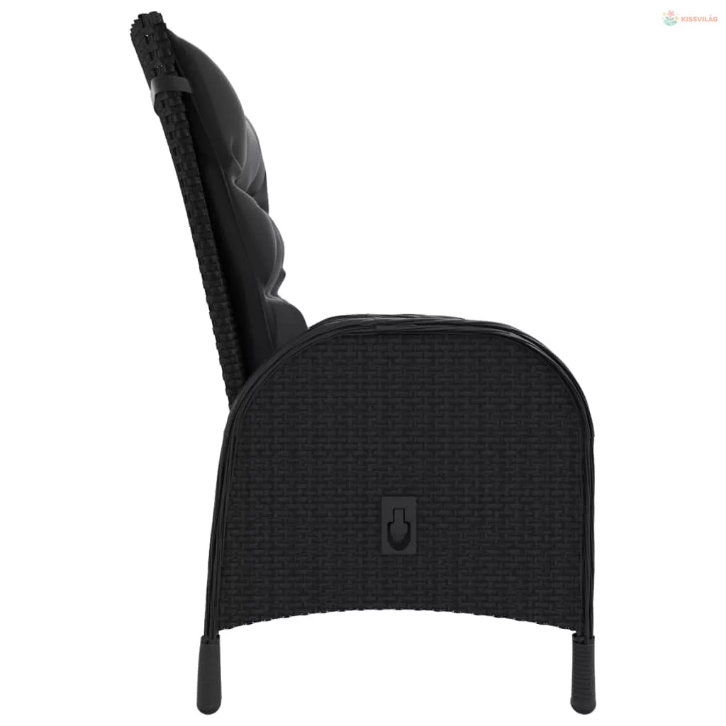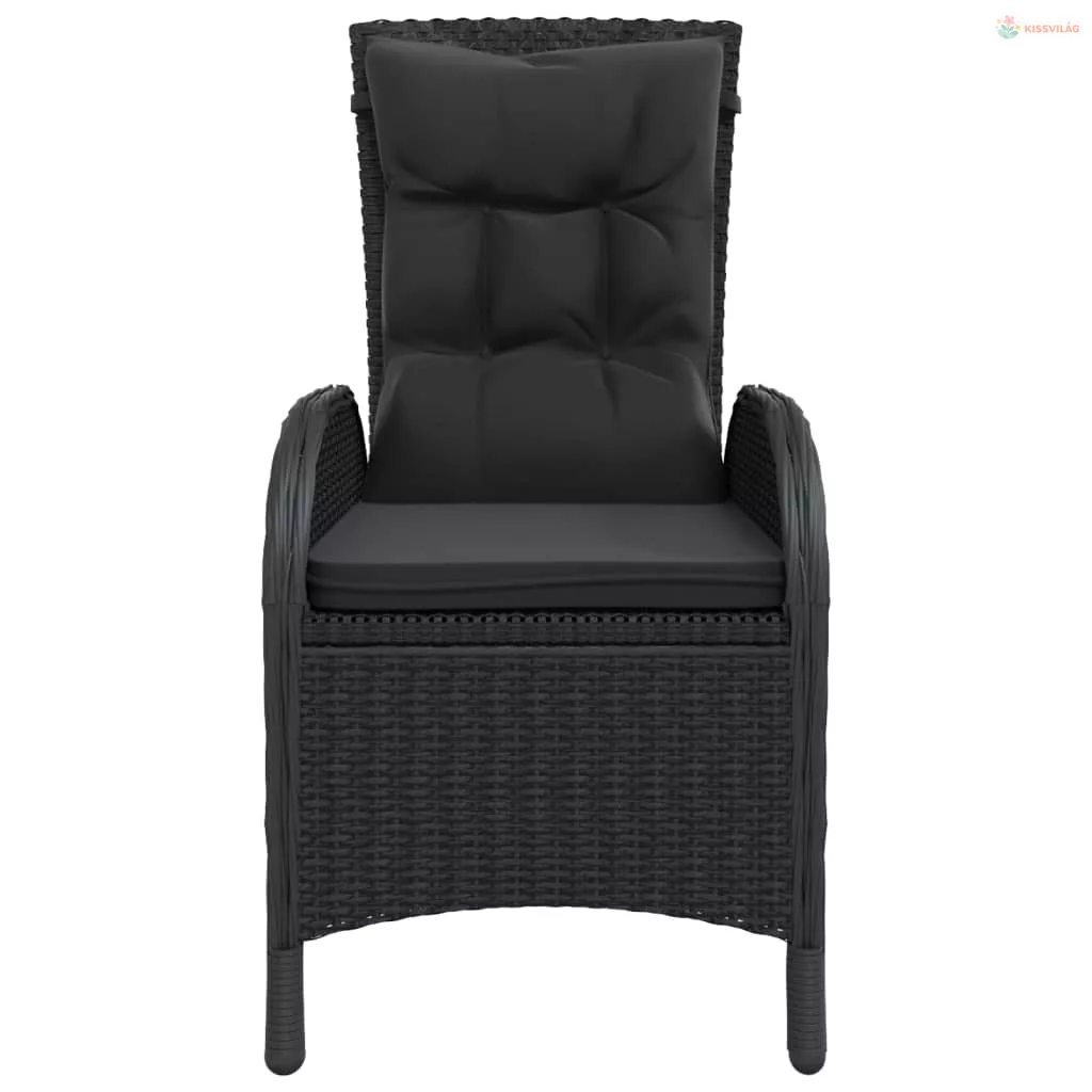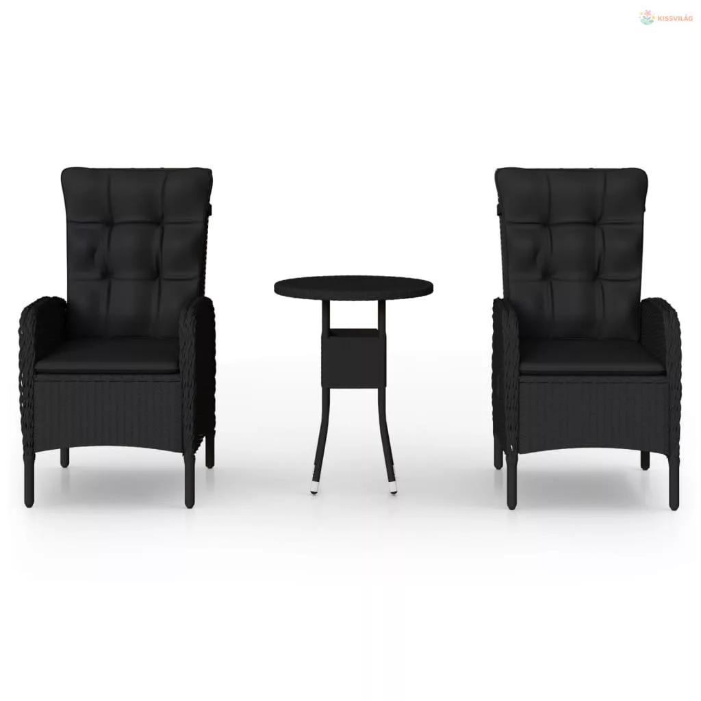 3 részes fekete polyrattan kerti étkezőgarnitúra párnákkal