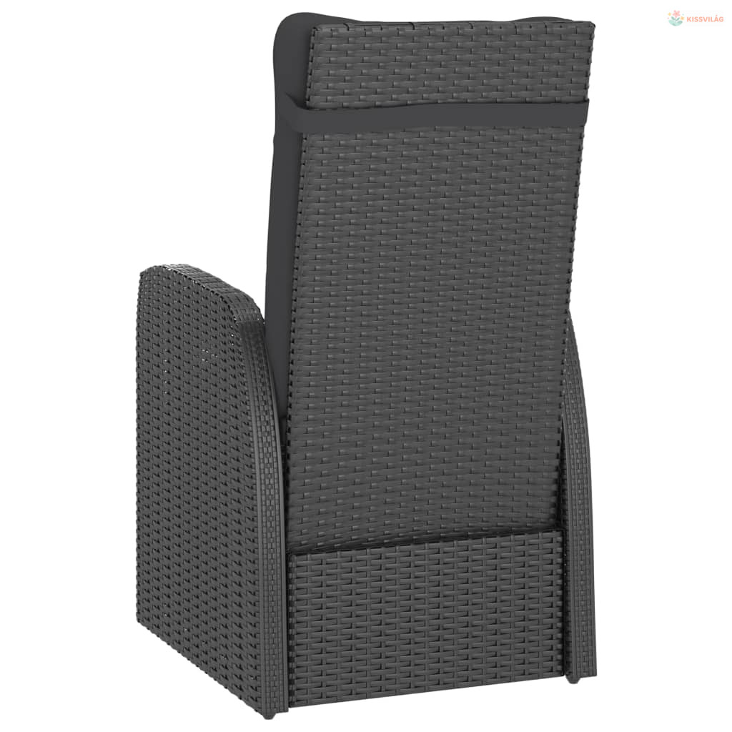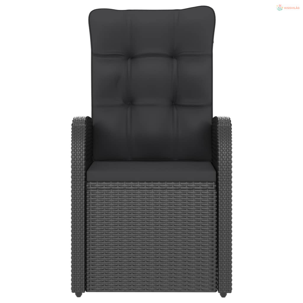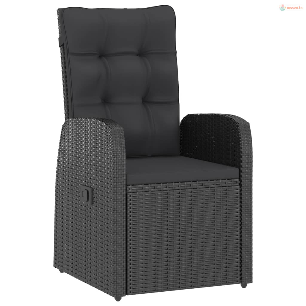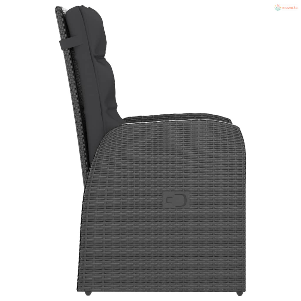 7 részes fekete polyrattan kültéri étkezőszett párnákkal