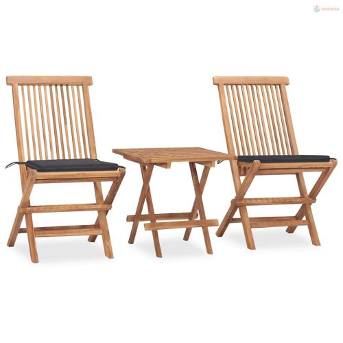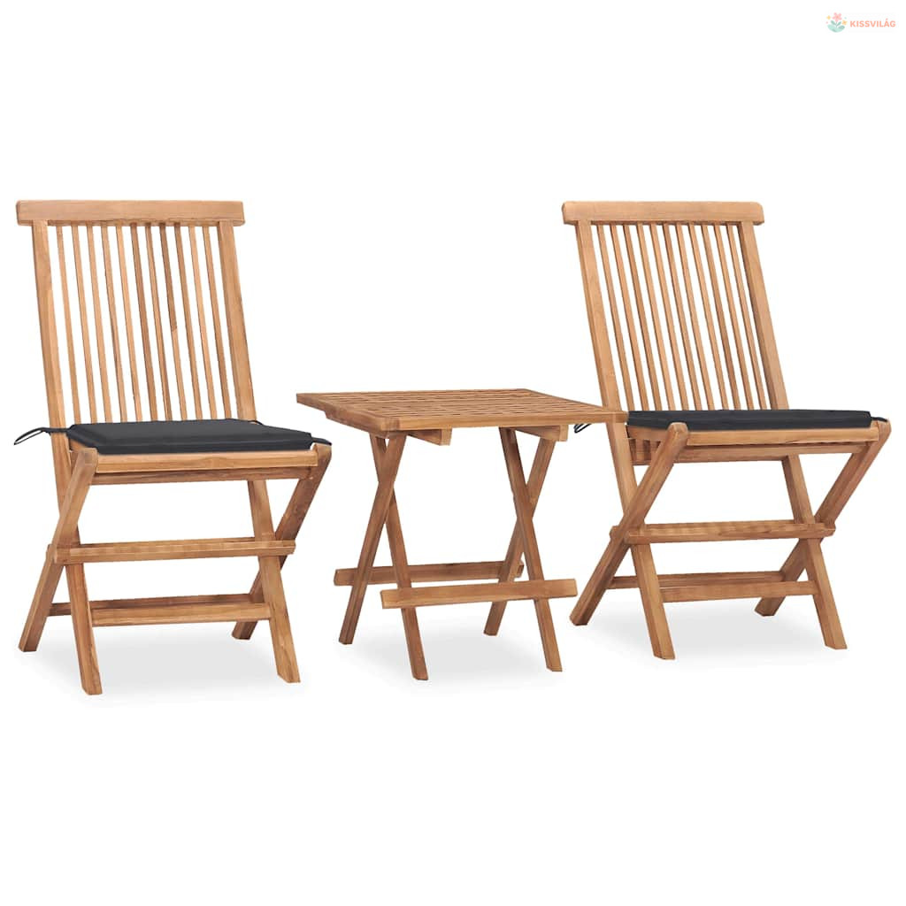 3 részes összecsukható tömör tíkfa étkezőgarnitúra párnákkal