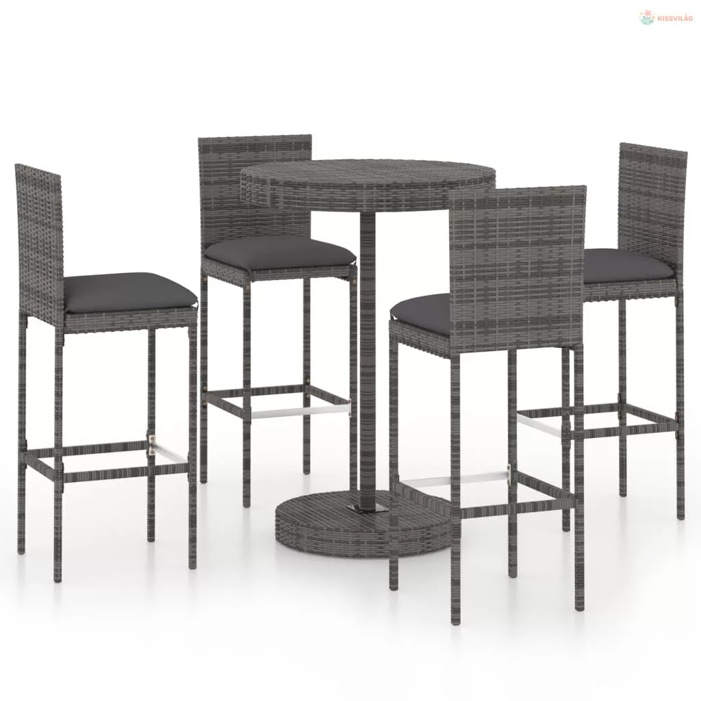 5 részes szürke polyrattan kerti bárszett párnákkal
