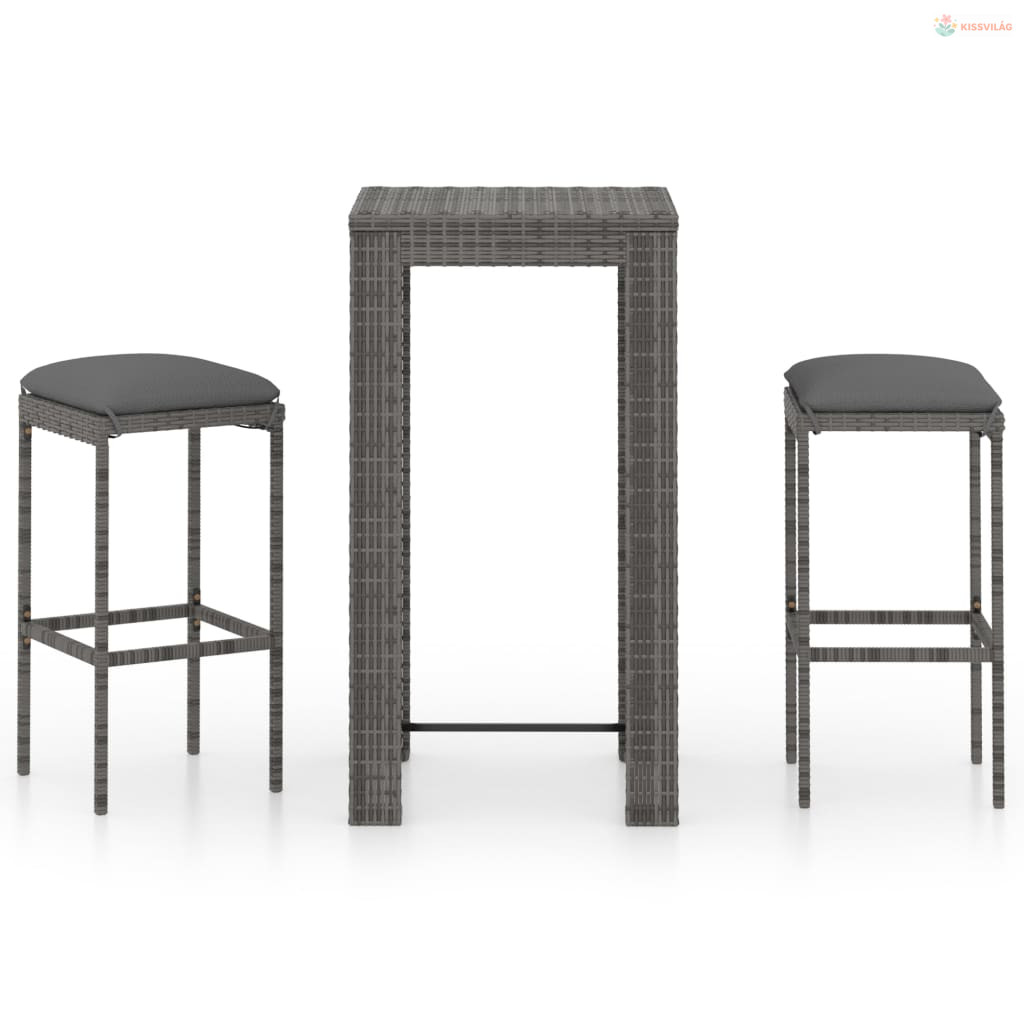 3 részes szürke polyrattan kerti bárszett párnákkal