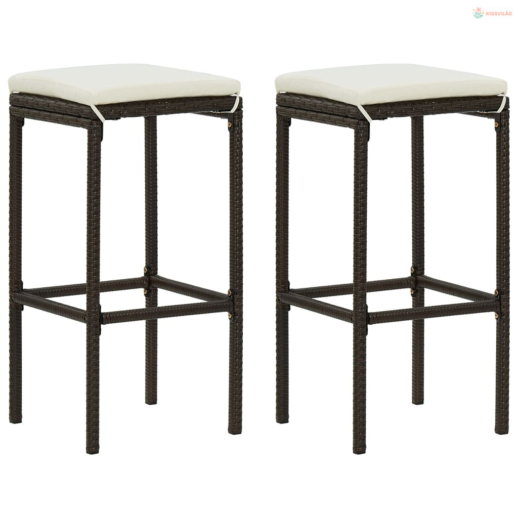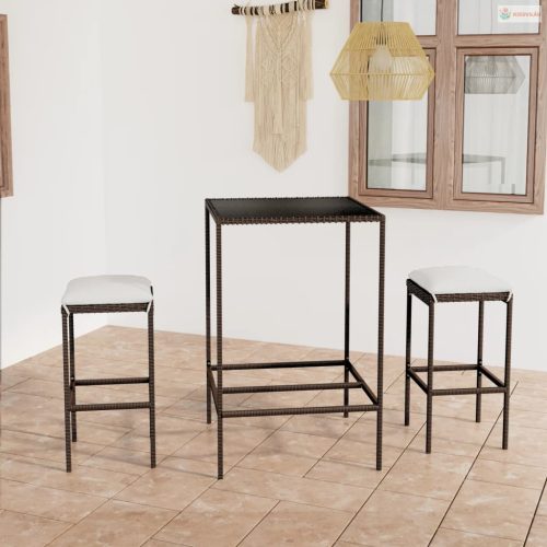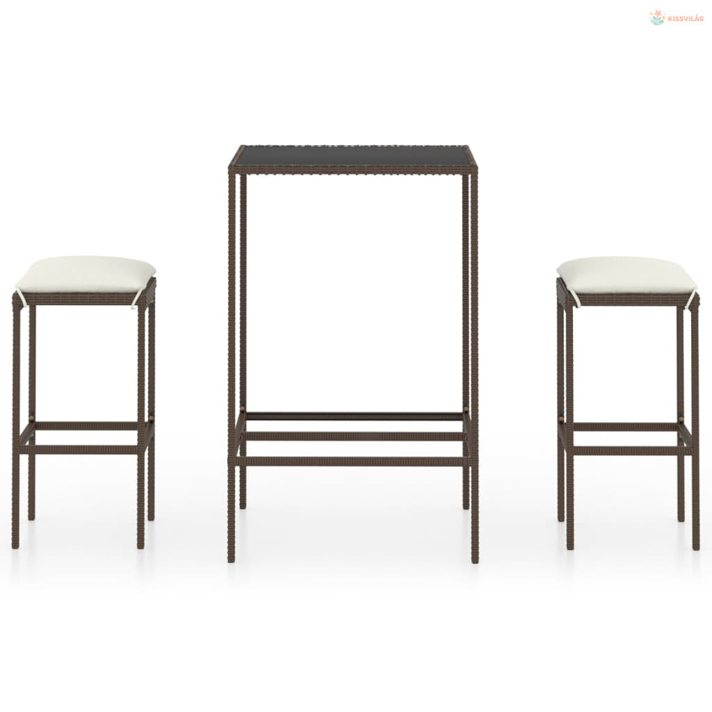 3 részes barna polyrattan kerti bárszett párnákkal