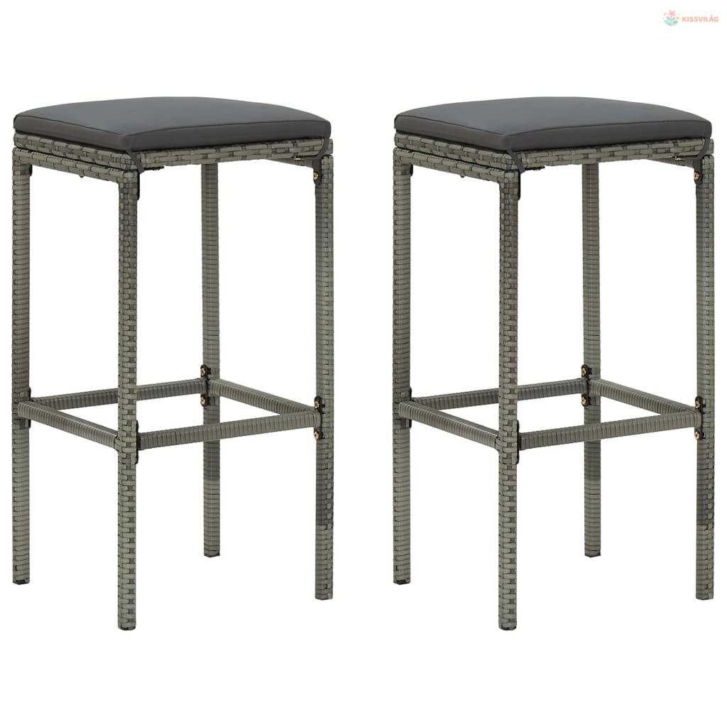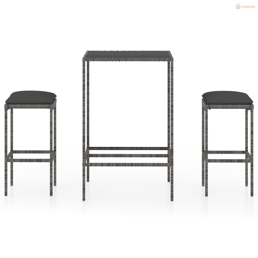 3 részes szürke polyrattan kerti bárszett párnákkal