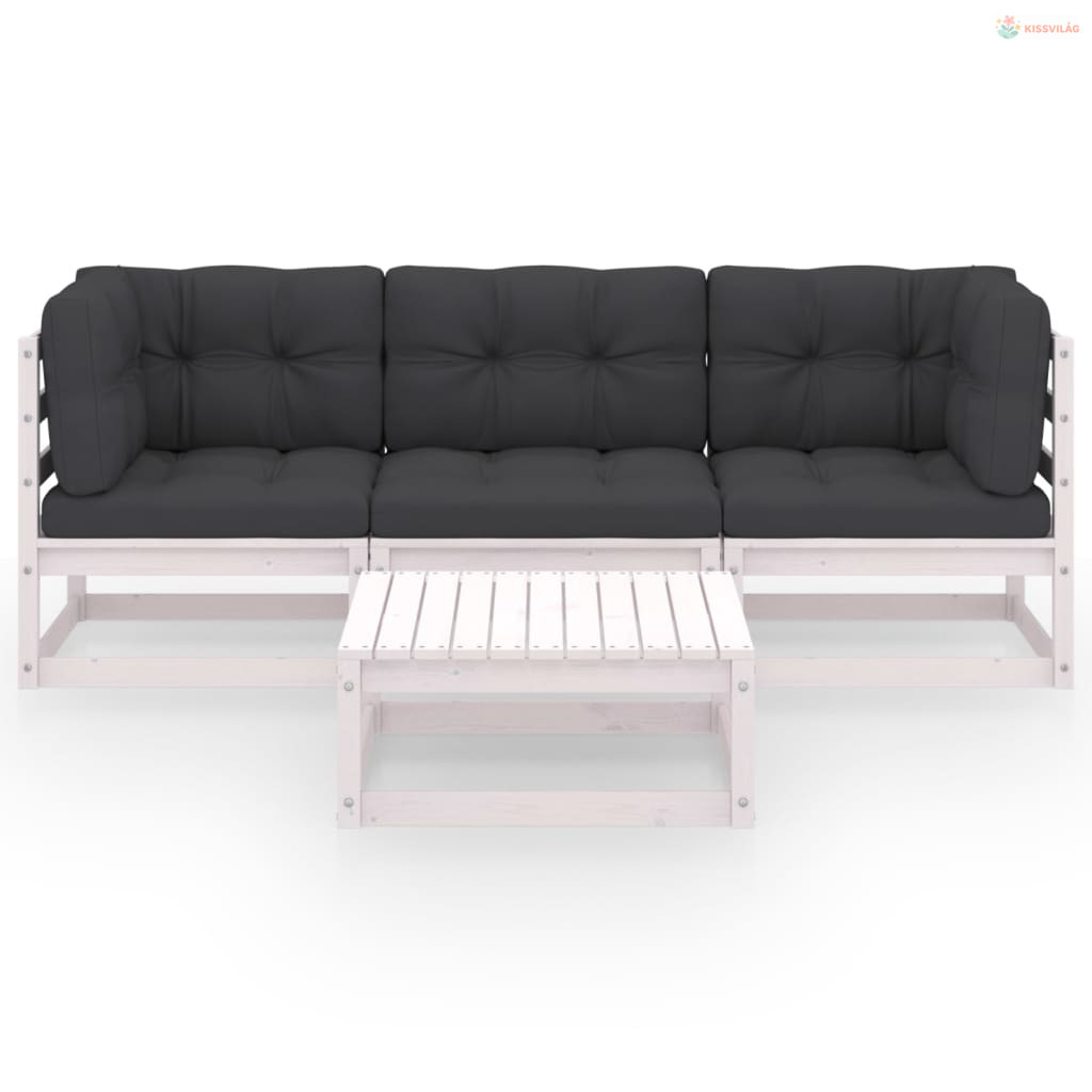 4 részes tömör fenyőfa kerti ülőgarnitúra párnákkal