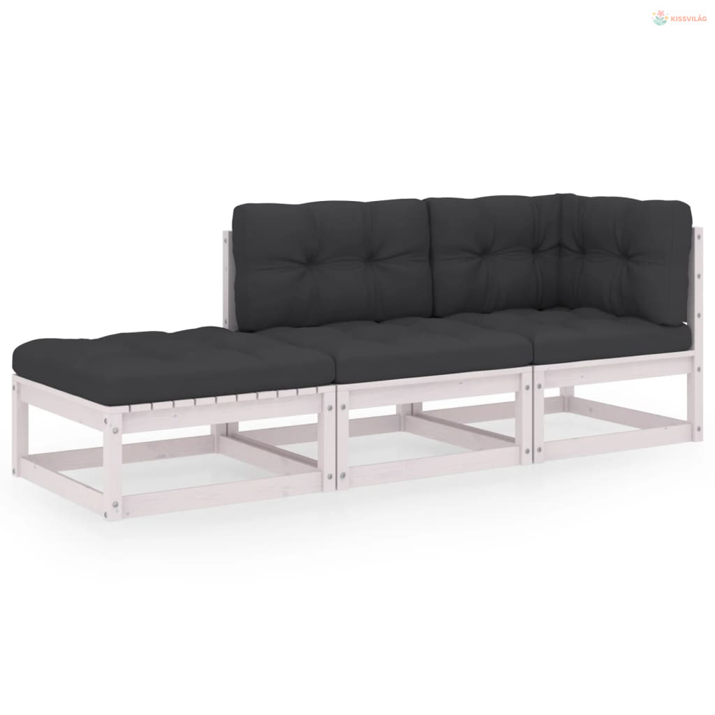 3 részes tömör fenyőfa kerti ülőgarnitúra párnával