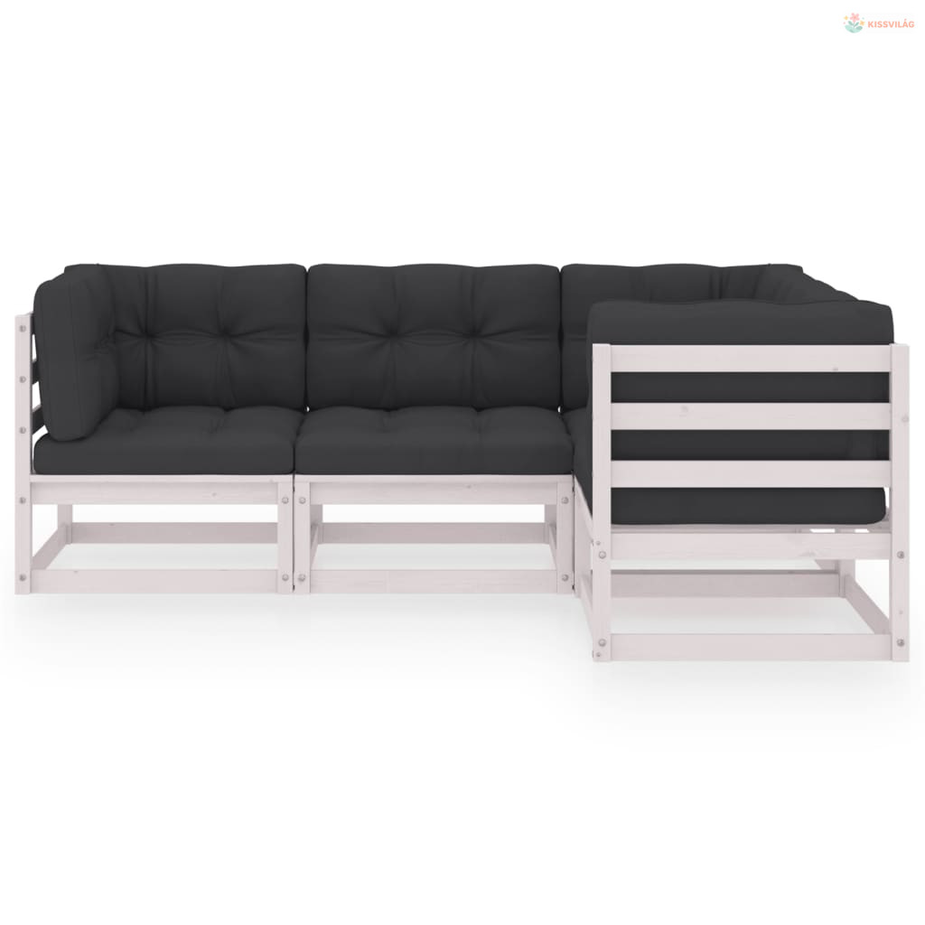 4 részes tömör fenyőfa kerti ülőgarnitúra párnákkal
