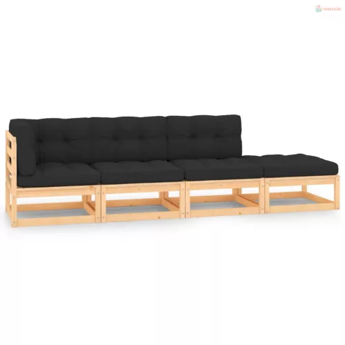 4 részes tömör fenyőfa kerti ülőgarnitúra párnákkal