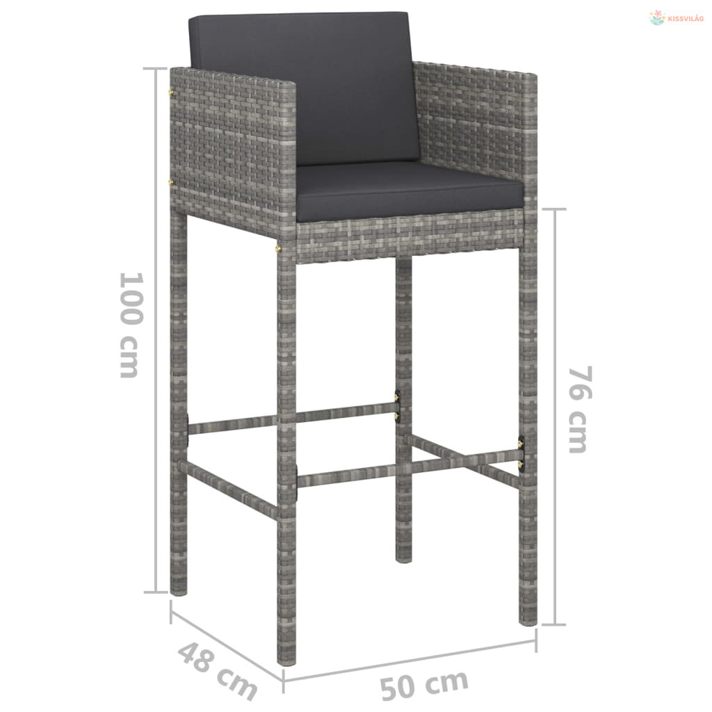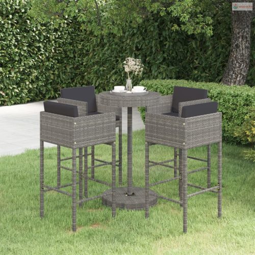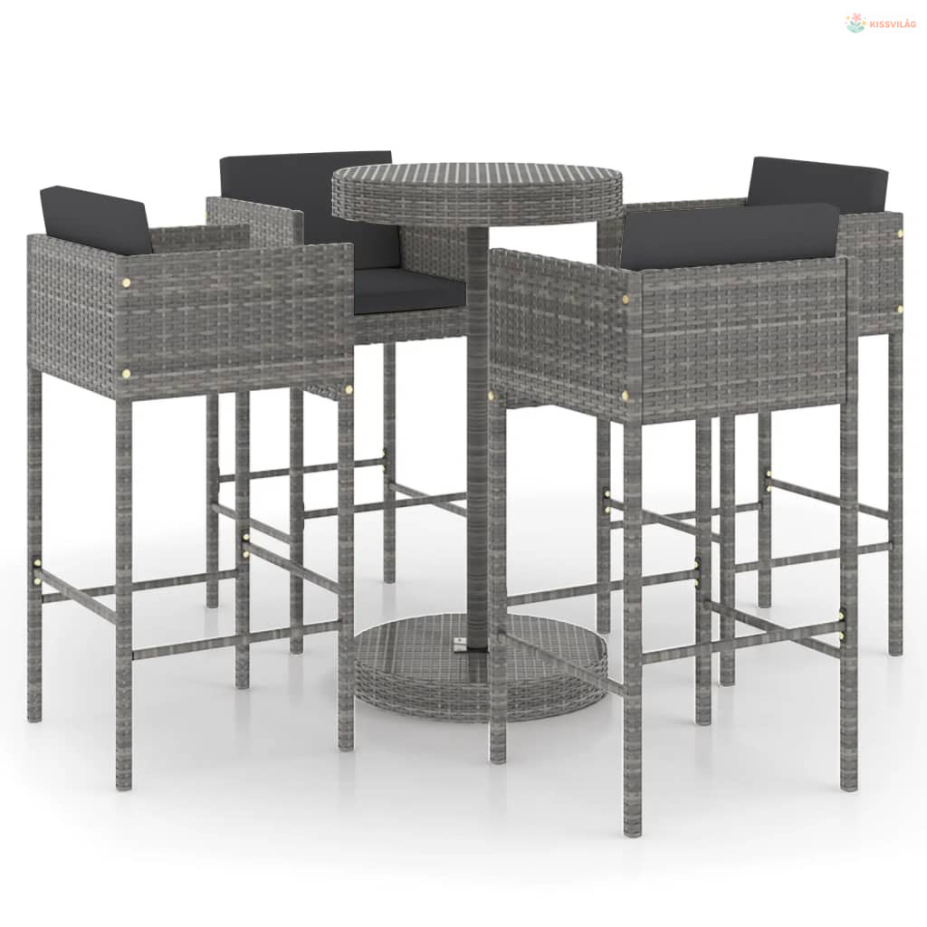 5 részes szürke polyrattan kerti bárszett párnákkal