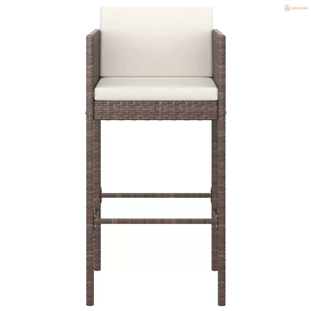3 részes barna polyrattan kerti bárszett párnákkal