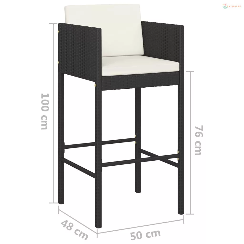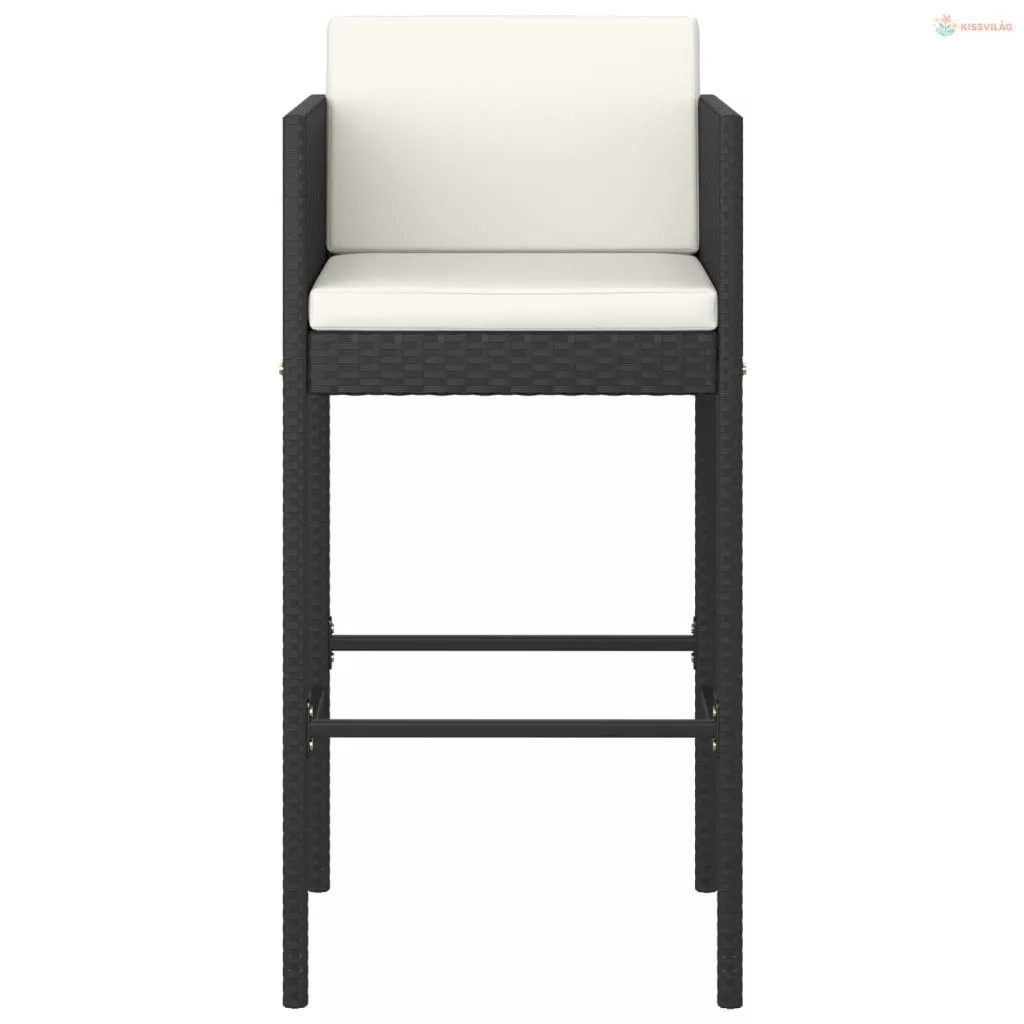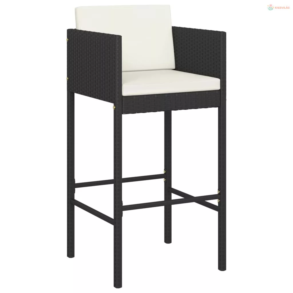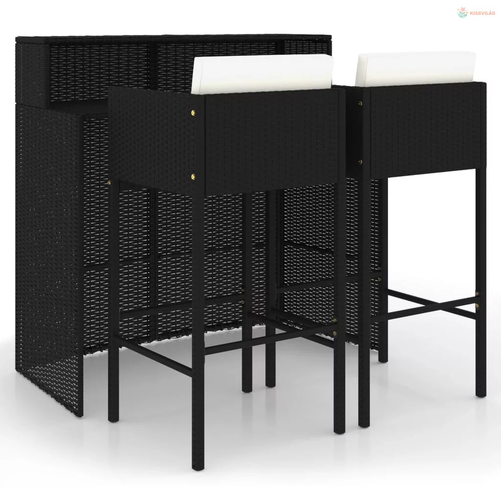 3 részes fekete polyrattan kültéri bárszett párnákkal