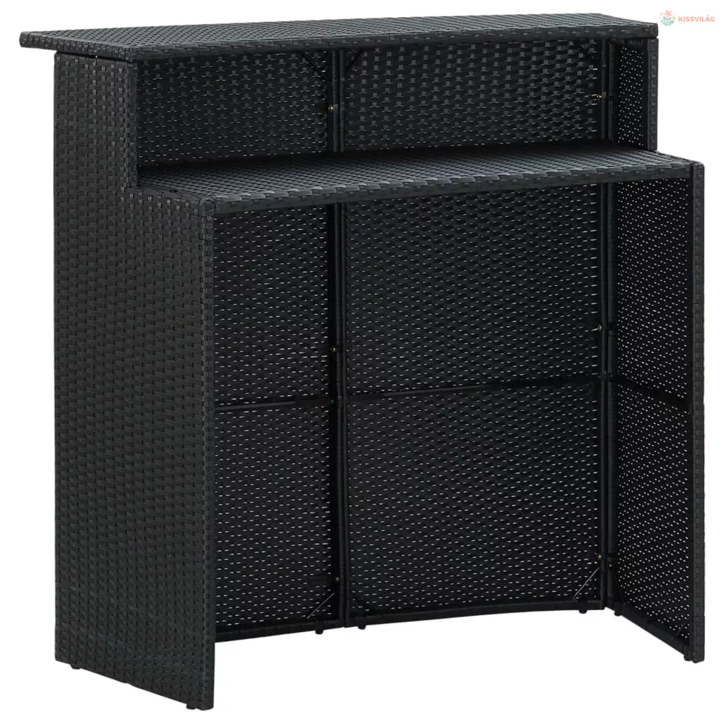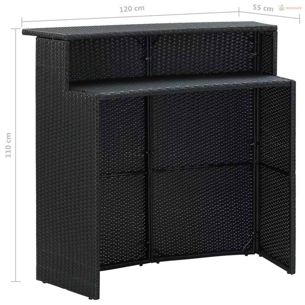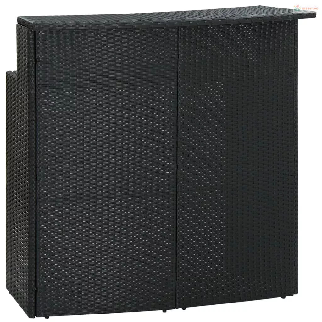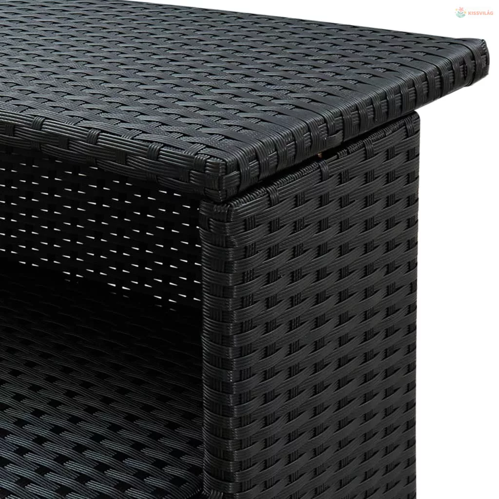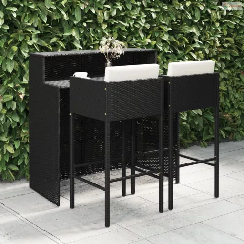 3 részes fekete polyrattan kültéri bárszett párnákkal