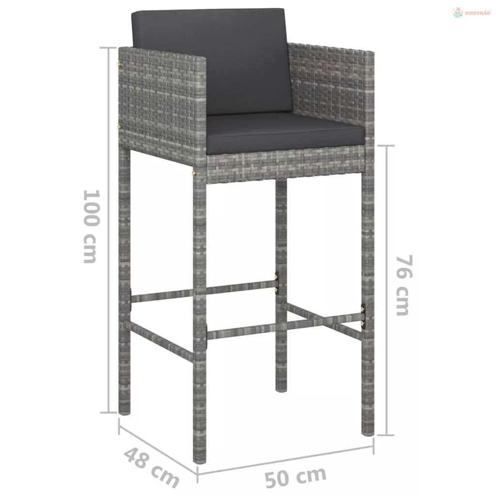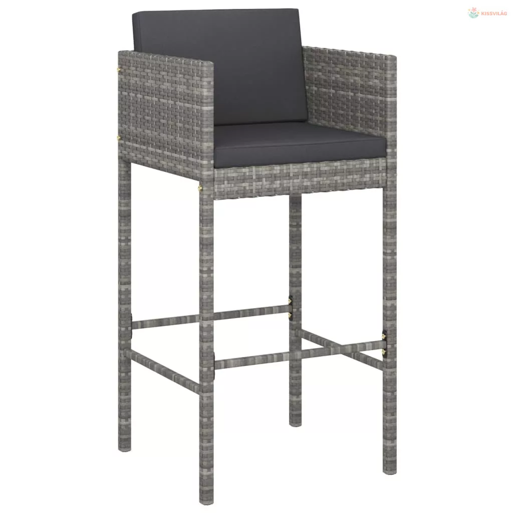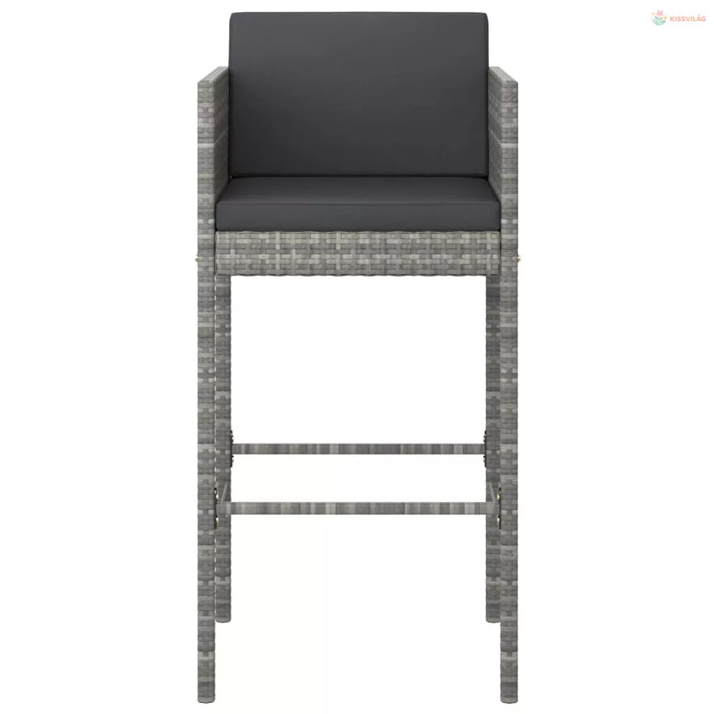 3 részes szürke polyrattan kerti bárszett párnákkal