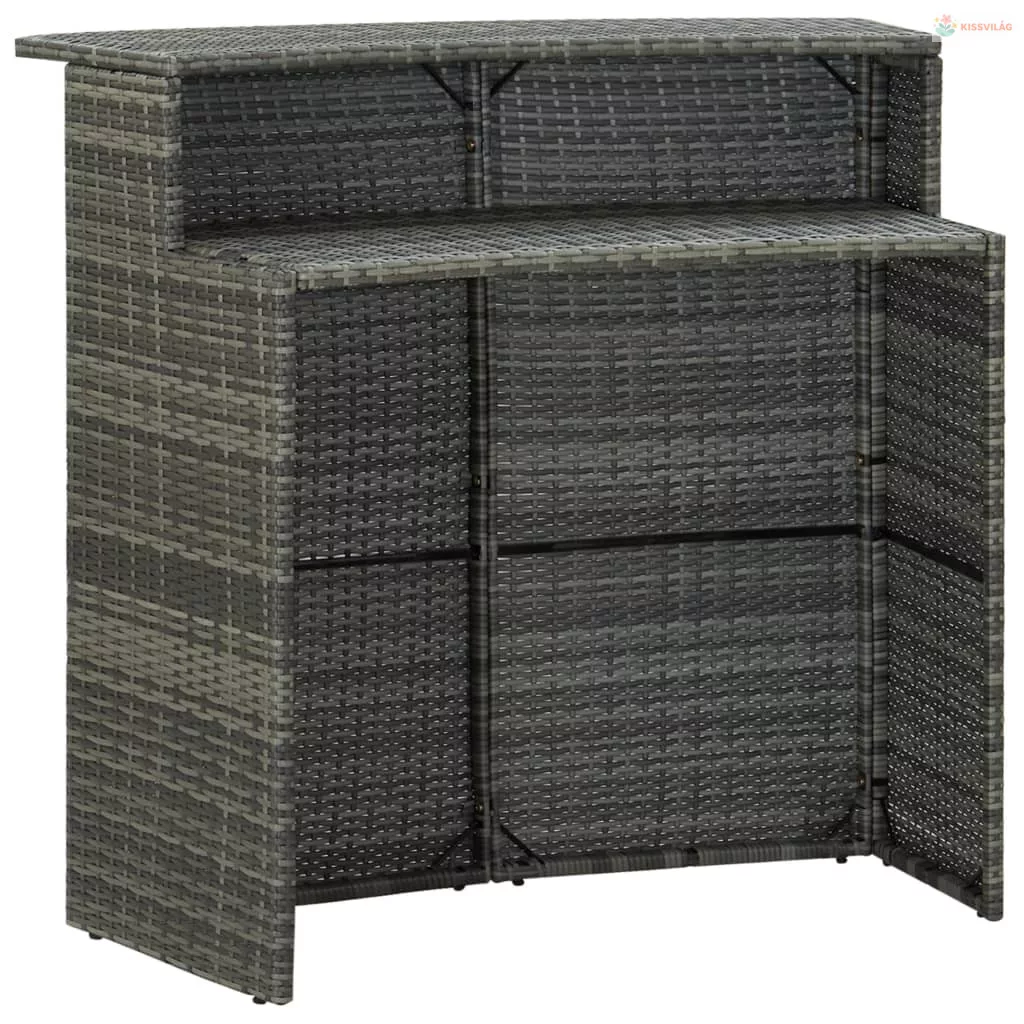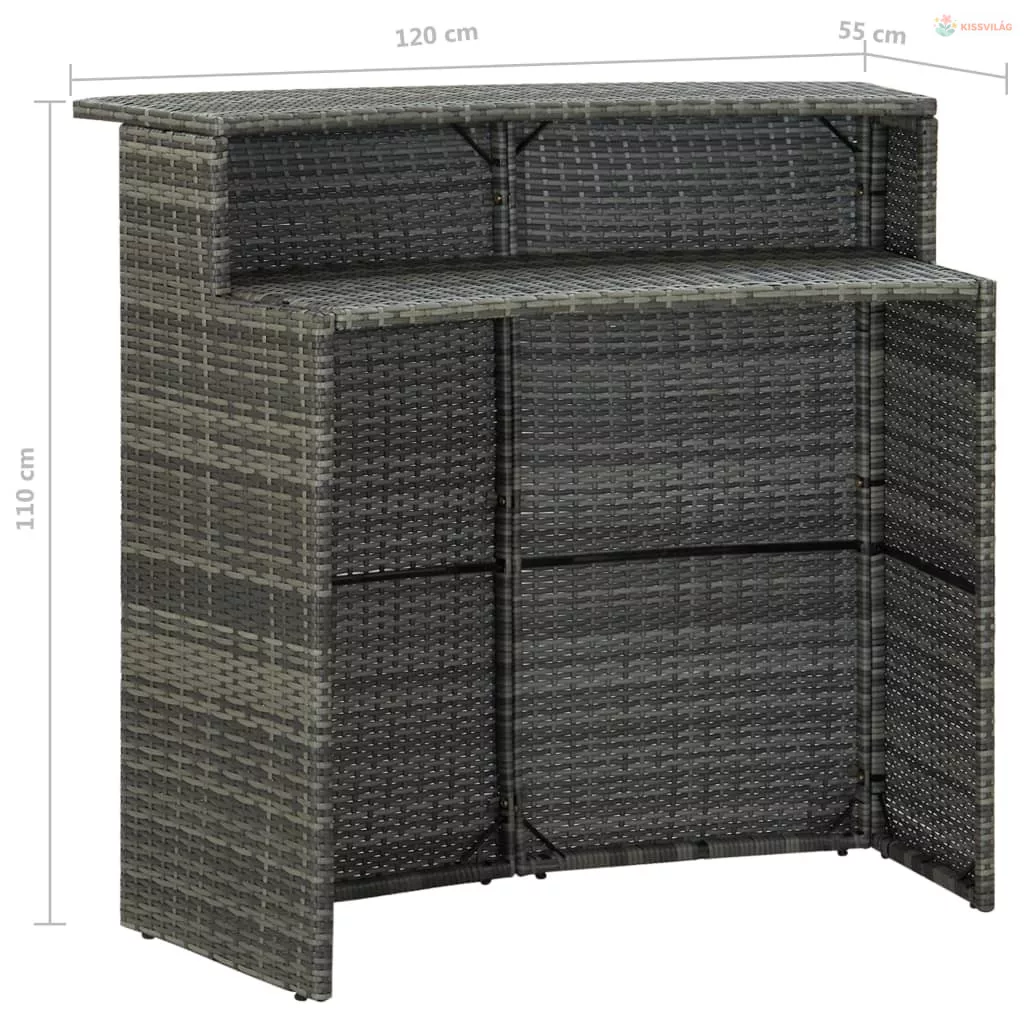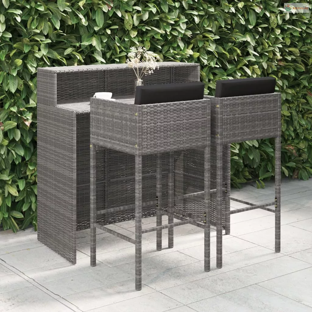 3 részes szürke polyrattan kerti bárszett párnákkal