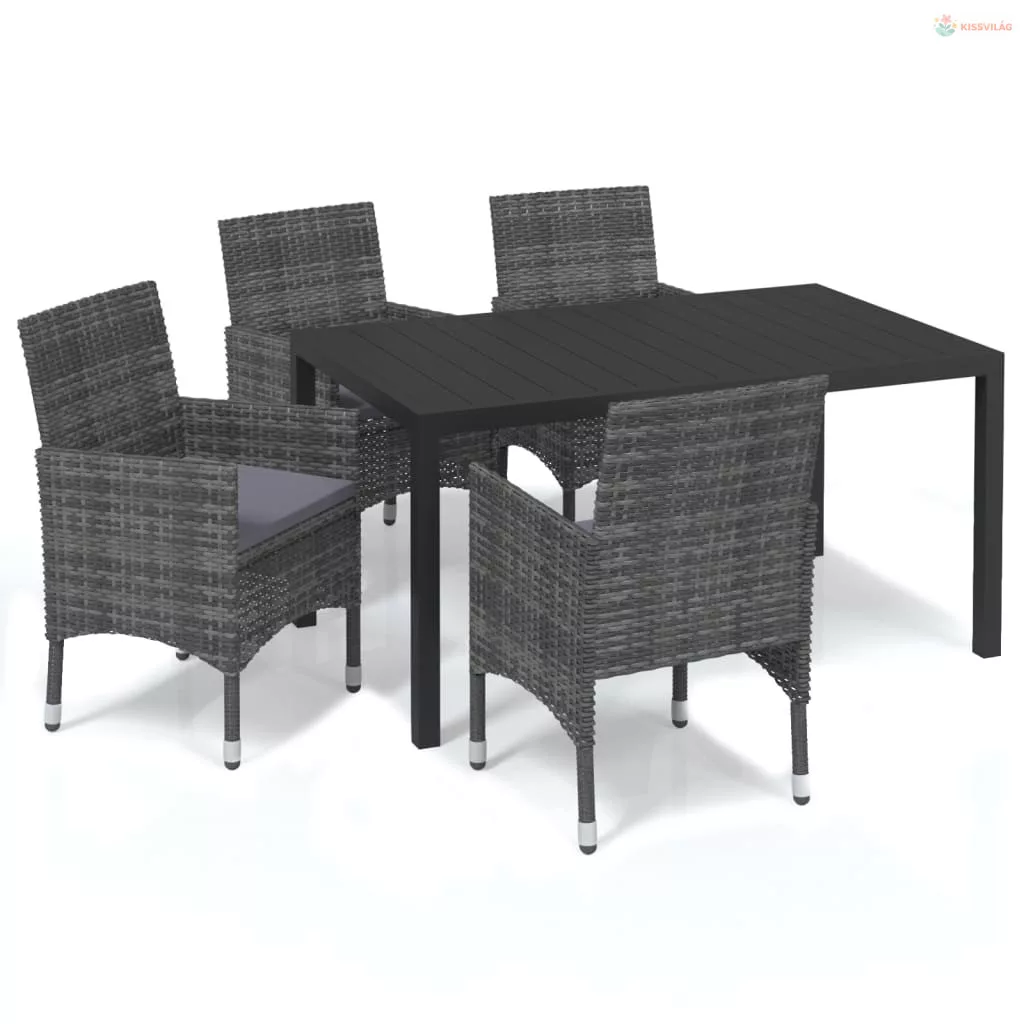 5 részes szürke polyrattan kerti étkezőgarnitúra párnákkal
