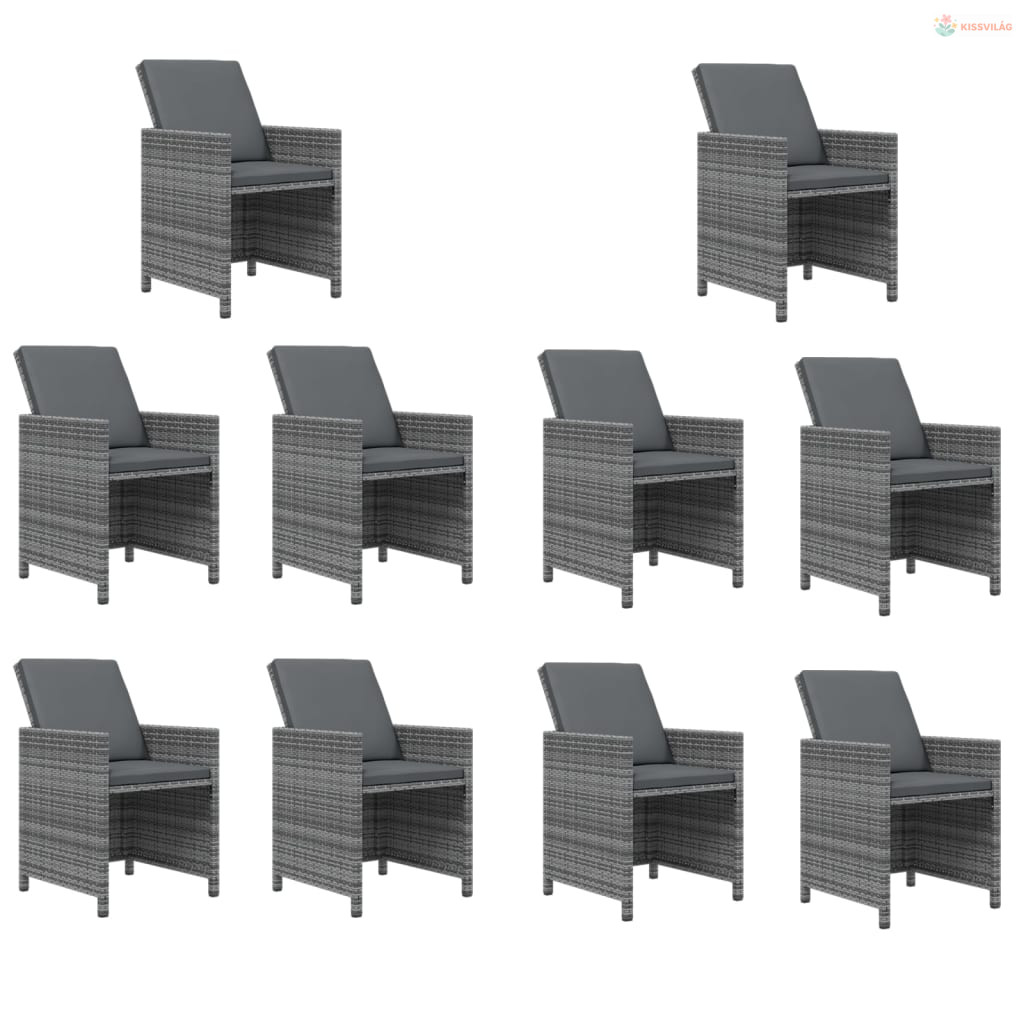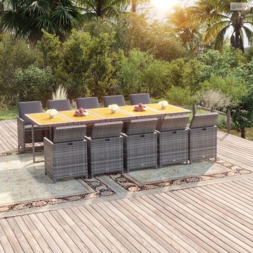 11 részes szürke polirattan kerti étkezőgarnitúra párnákkal