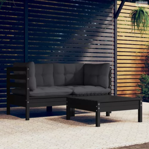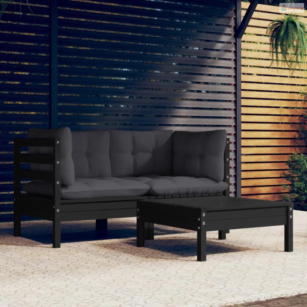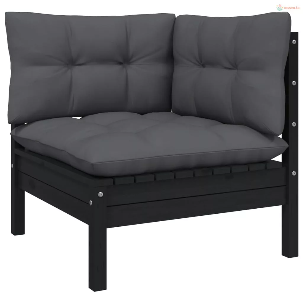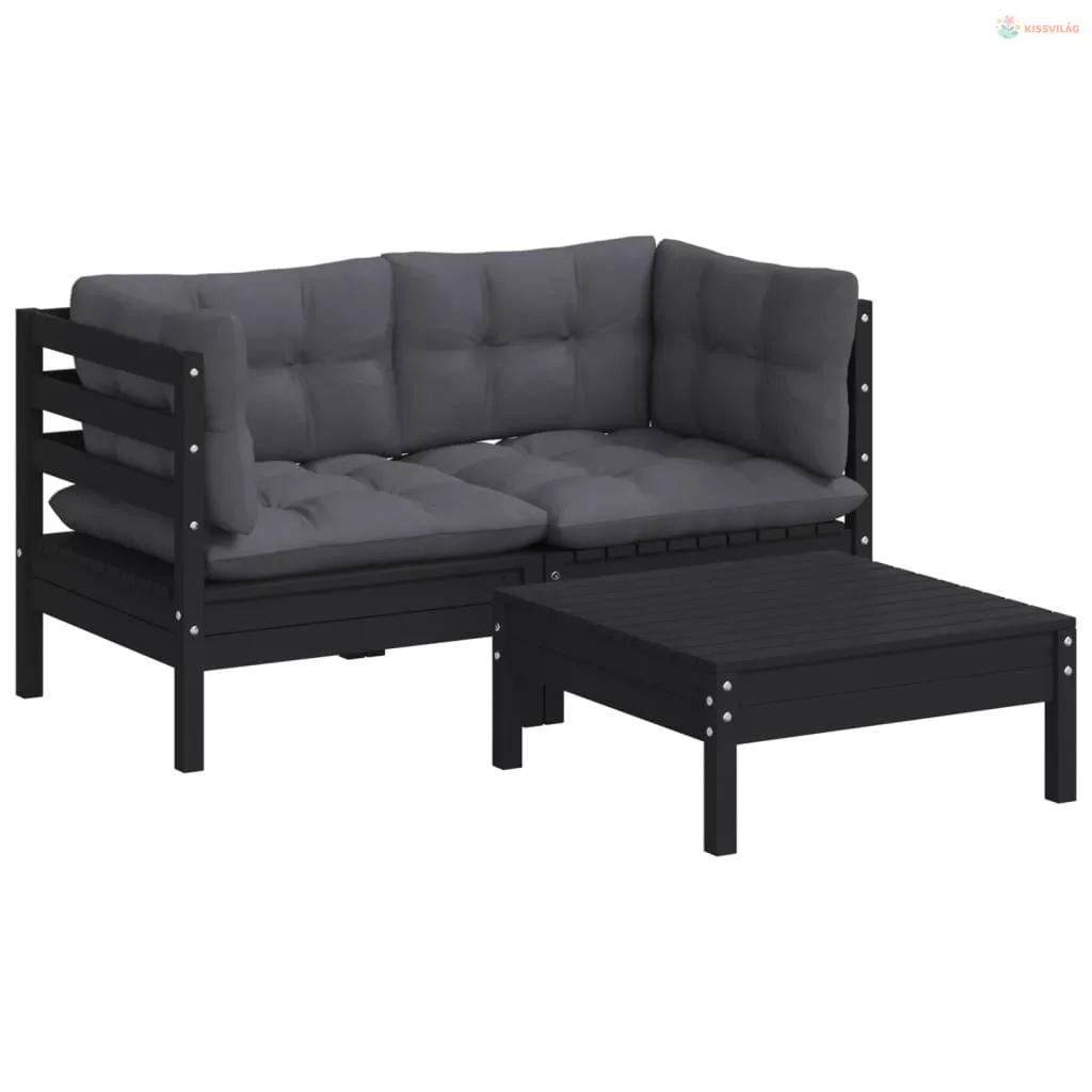 3 részes fenyőfa kerti ülőgarnitúra antracitszürke párnákkal