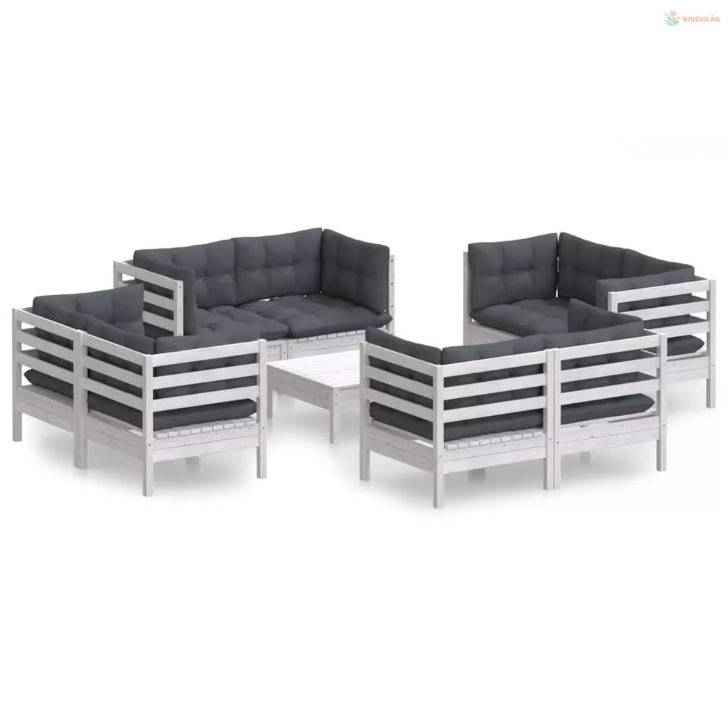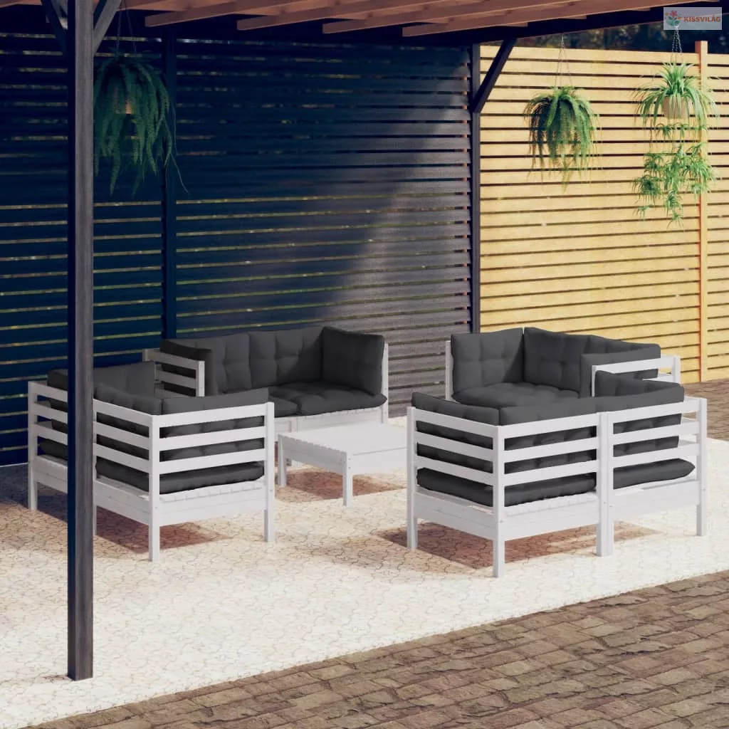 9 részes fenyőfa kerti ülőgarnitúra antracitszürke párnákkal