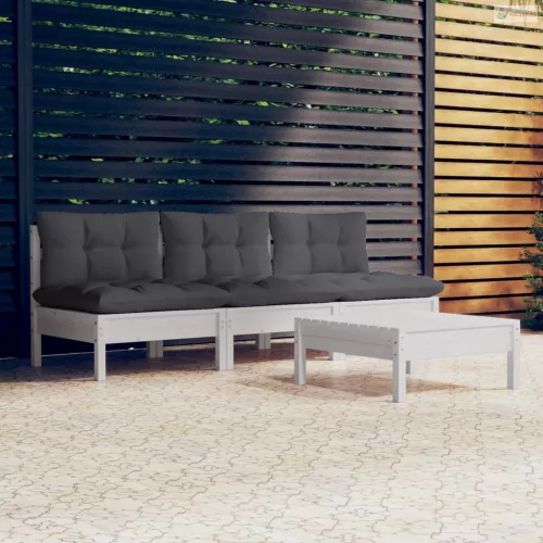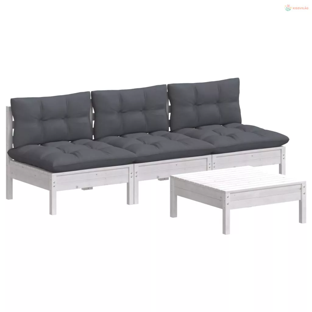 4 részes fenyőfa kerti ülőgarnitúra antracitszürke párnákkal