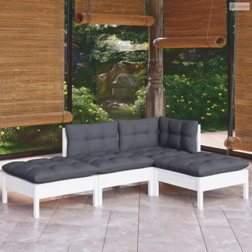4 részes tömör fenyőfa kerti ülőgarnitúra párnákkal
