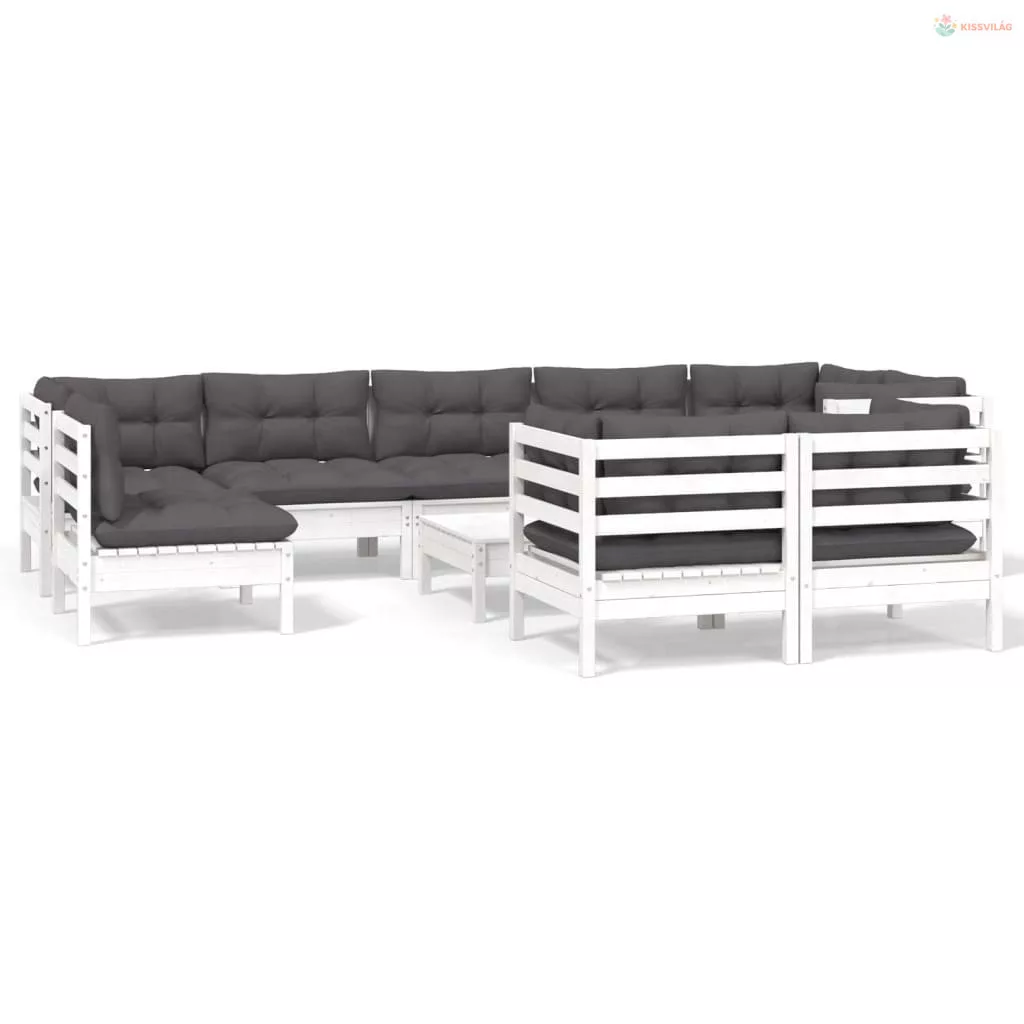 10 részes fehér tömör fenyőfa kerti ülőgarnitúra párnákkal