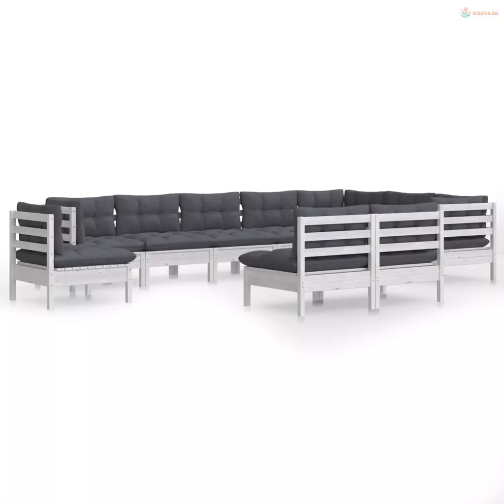 10 részes fehér tömör fenyőfa kerti ülőgarnitúra párnákkal