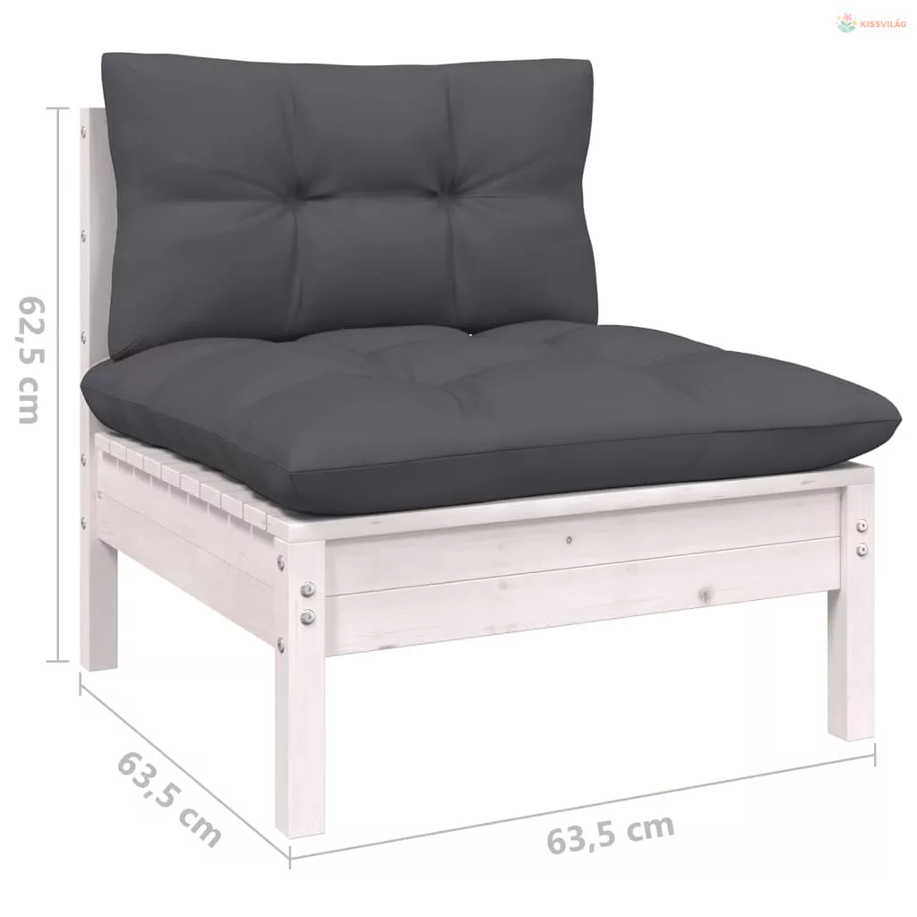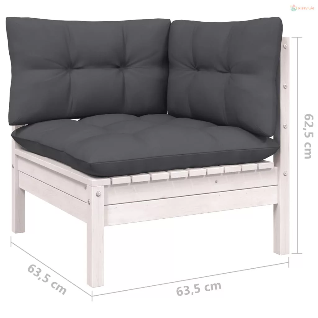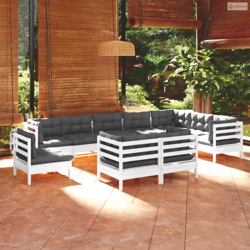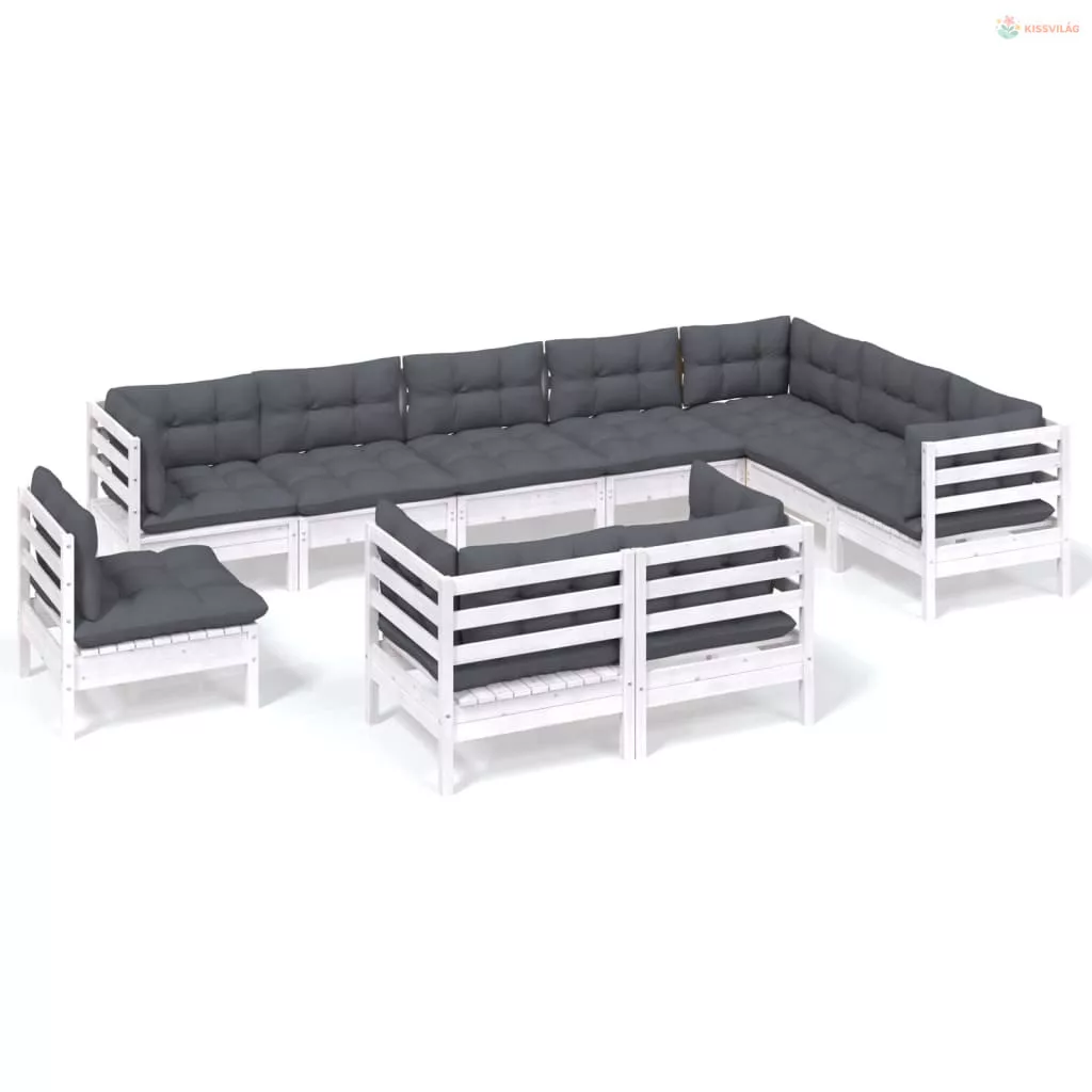 10 részes fehér tömör fenyőfa kerti ülőgarnitúra párnákkal