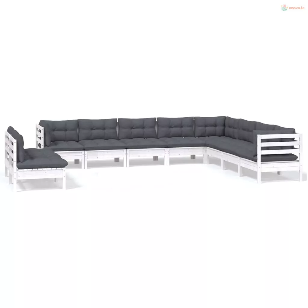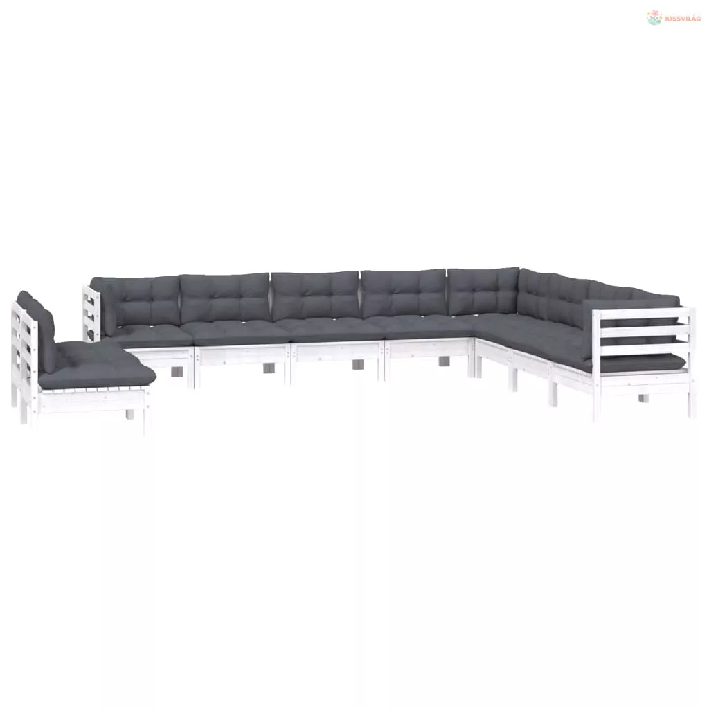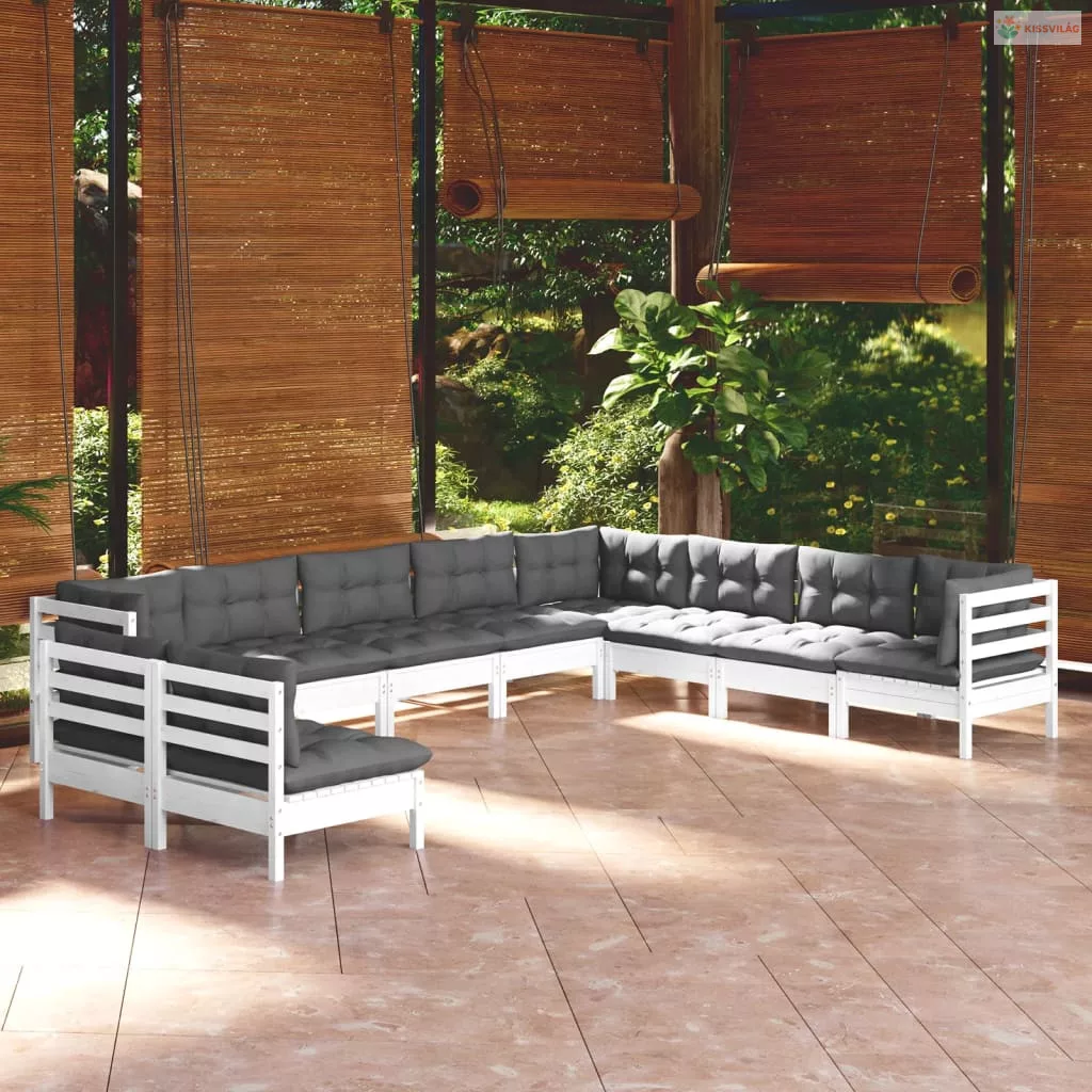 10 részes fehér tömör fenyőfa kerti ülőgarnitúra párnákkal