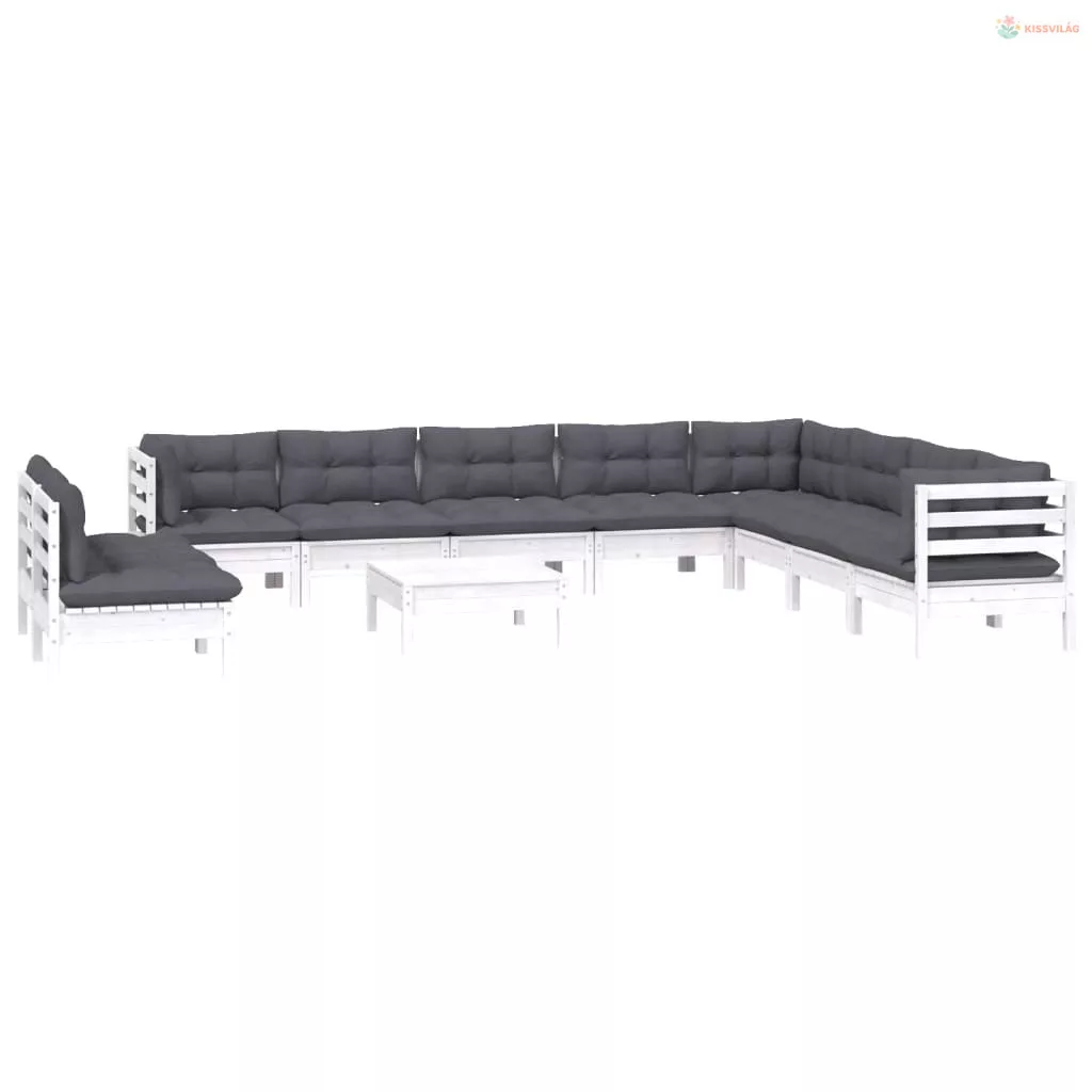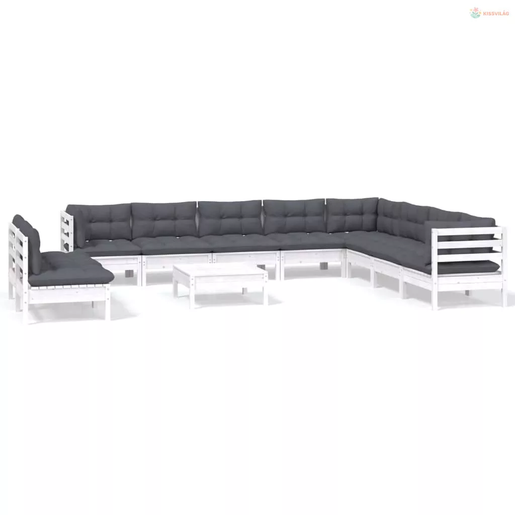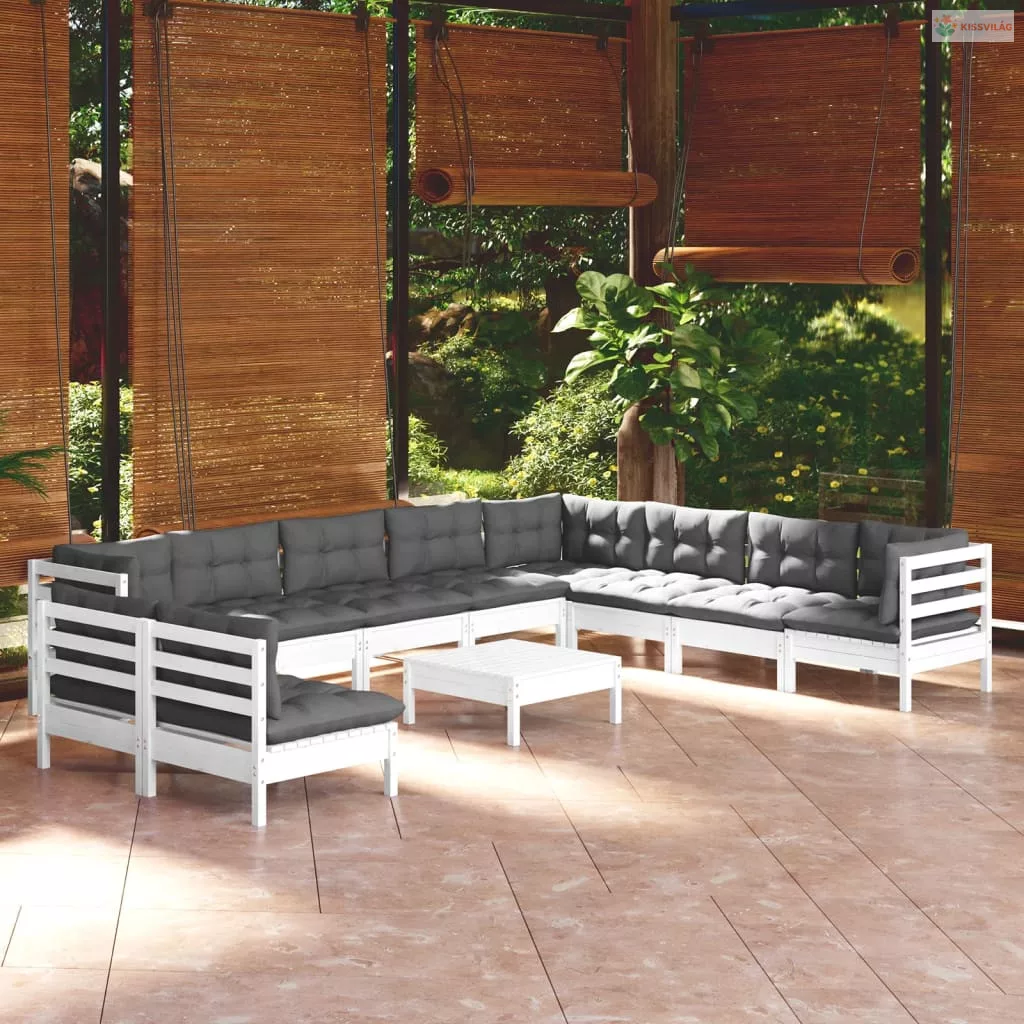 11 részes fehér tömör fenyőfa kerti ülőgarnitúra párnákkal