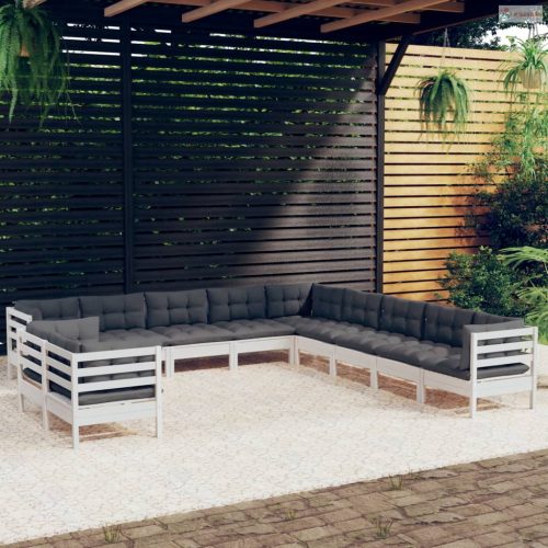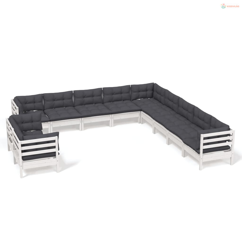 11 részes fehér tömör fenyőfa kerti ülőgarnitúra párnákkal