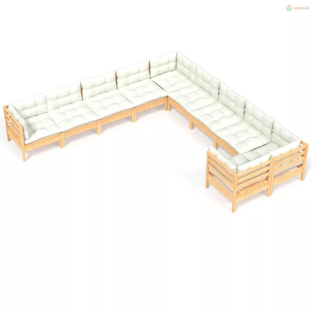 10 részes fenyőfa kerti ülőgarnitúra krémszínű párnákkal
